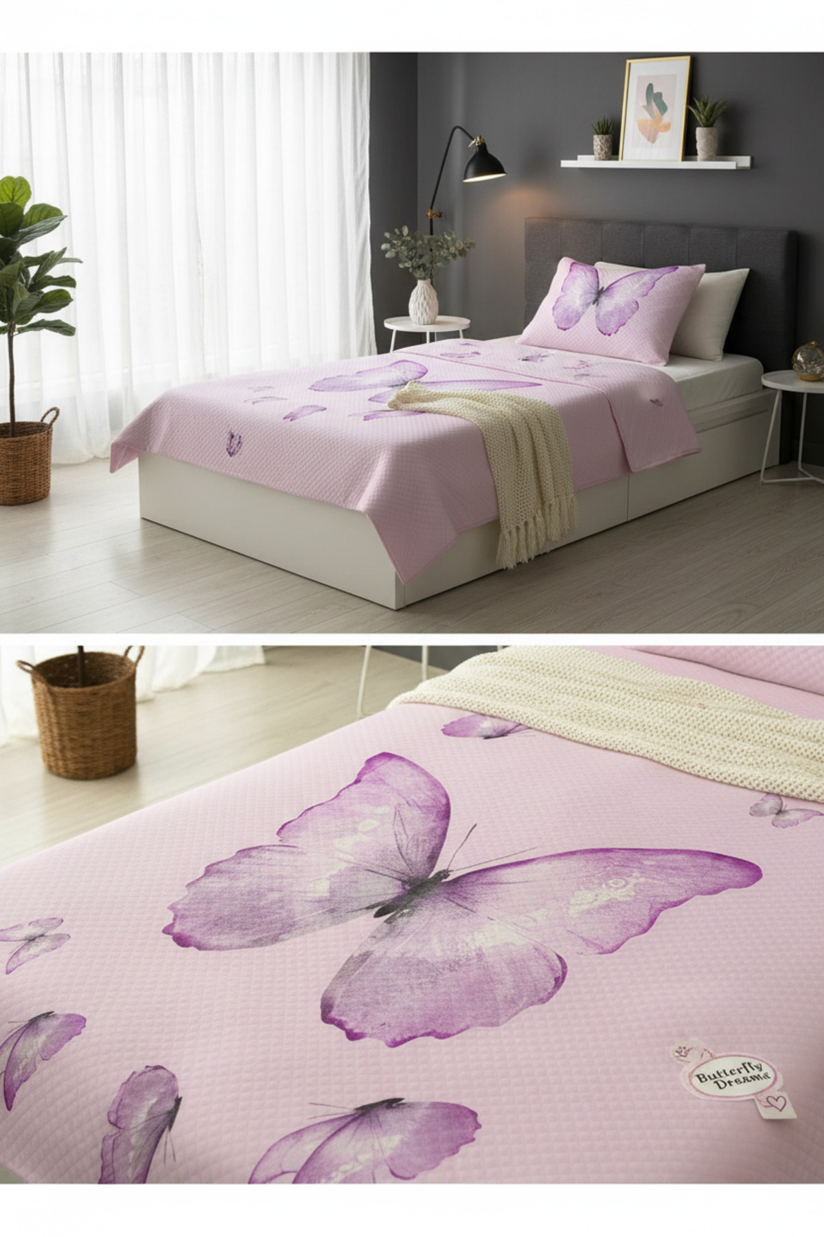 KELEBEK Desenli Bebek Çocuk Tek Kişilik PİKE ve YASTIK KILIFI Yatak Örtüsü Takımı KELEBEK Desenli Bebek Çocuk Tek Kişilik PİKE ve YASTIK KILIFI Yatak Örtüsü Takımı PSLHMK01 تک سایز
