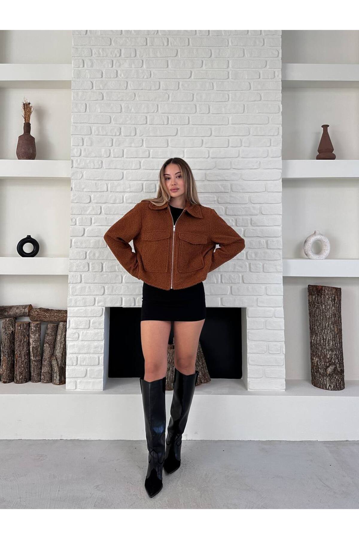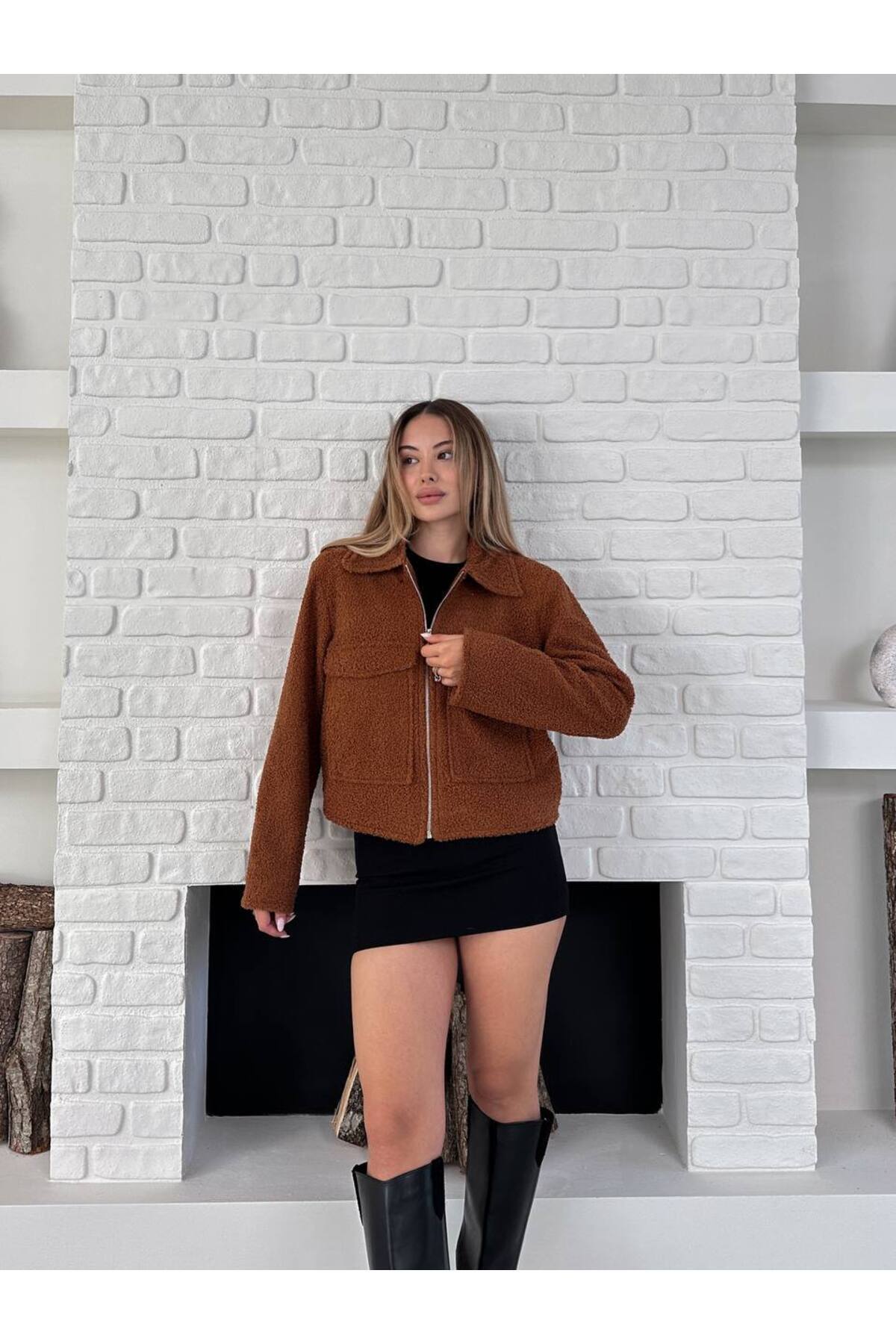 Kadın Fermuar Detay Kısa Peluş Ceket Kadın Fermuar Detay Kısa Peluş Ceket plscket XL