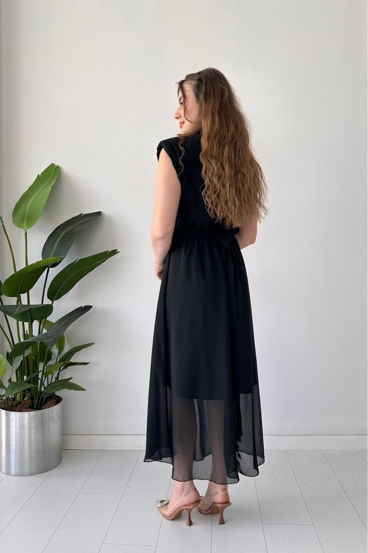 Kuşağı Parıltılı Şifon Elbise Siyah Kuşağı Parıltılı Şifon Elbise Siyah ccf3-16354 XL