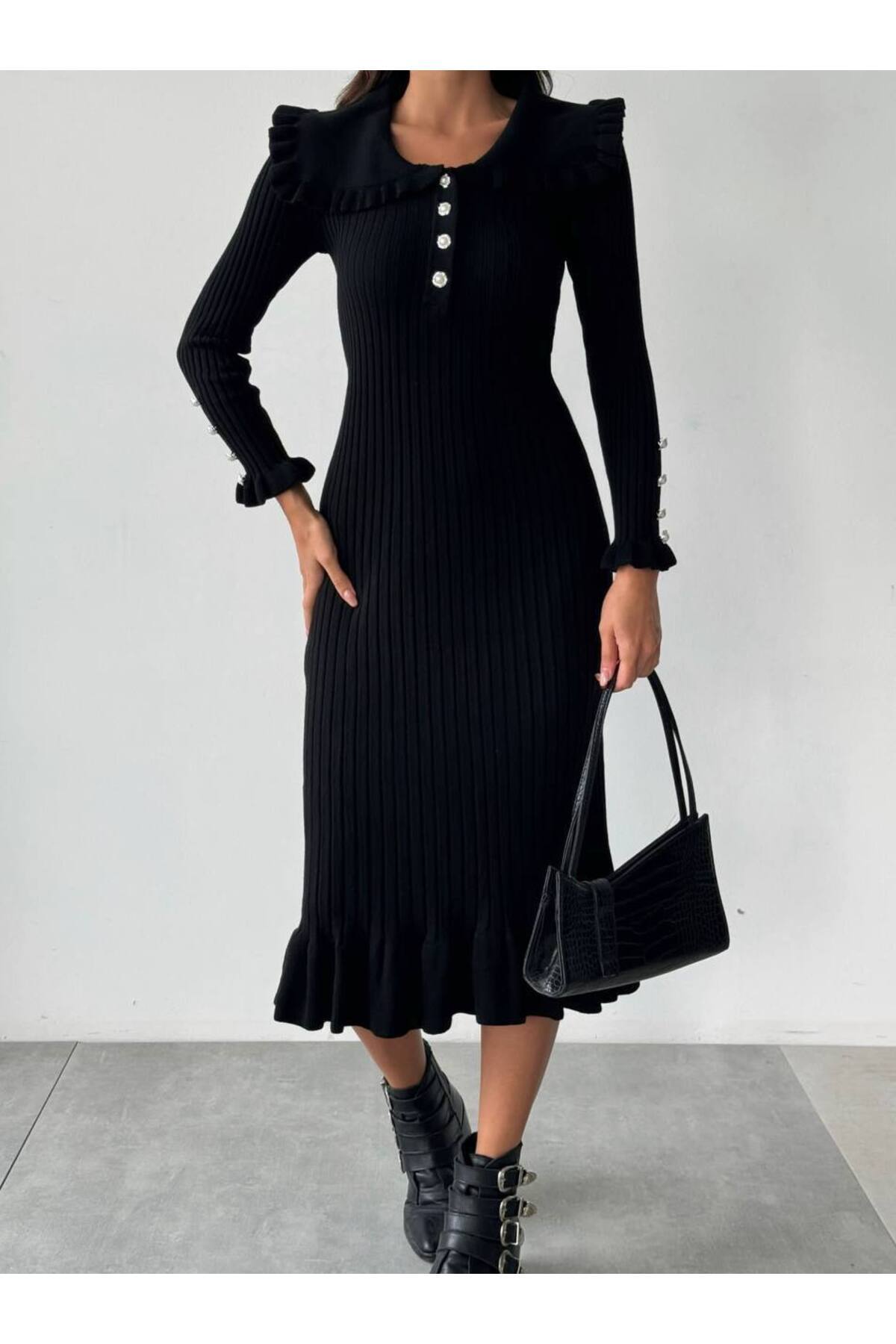Kadın Lacivert Şık Yaka Detaylı Midi Boy Triko Elbise (Yeni Renk) Kadın Lacivert Şık Yaka Detaylı Midi Boy Triko Elbise (Yeni Renk) LSN0113 Standart