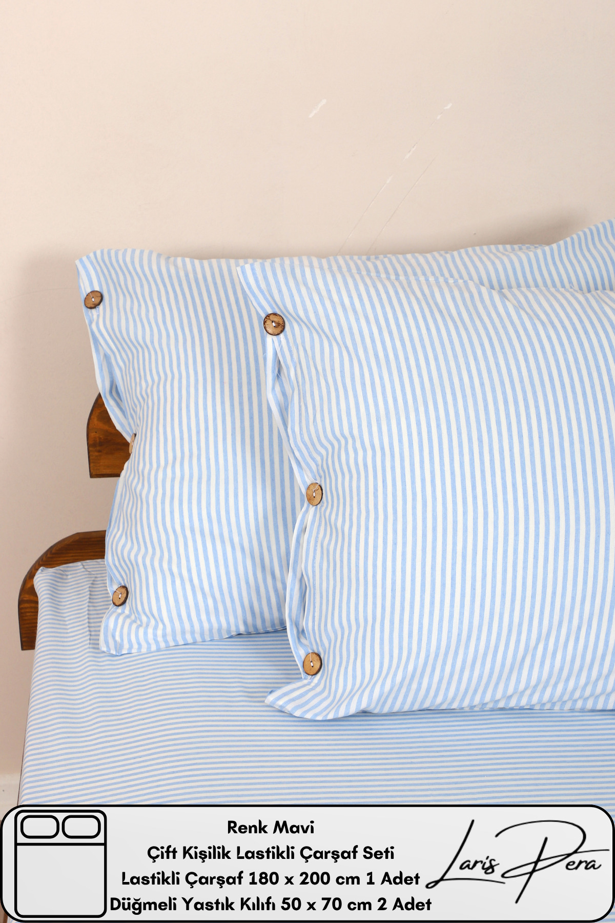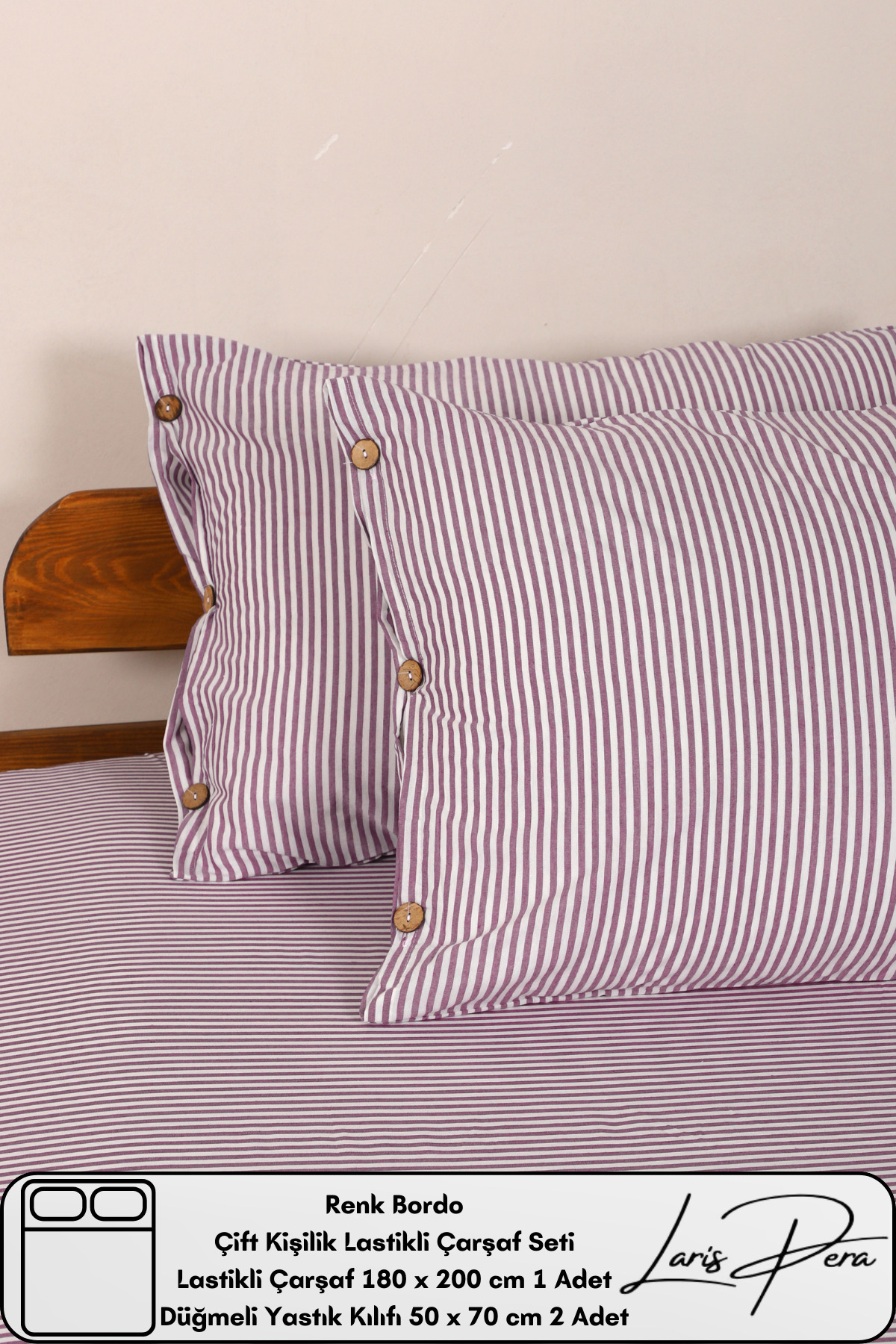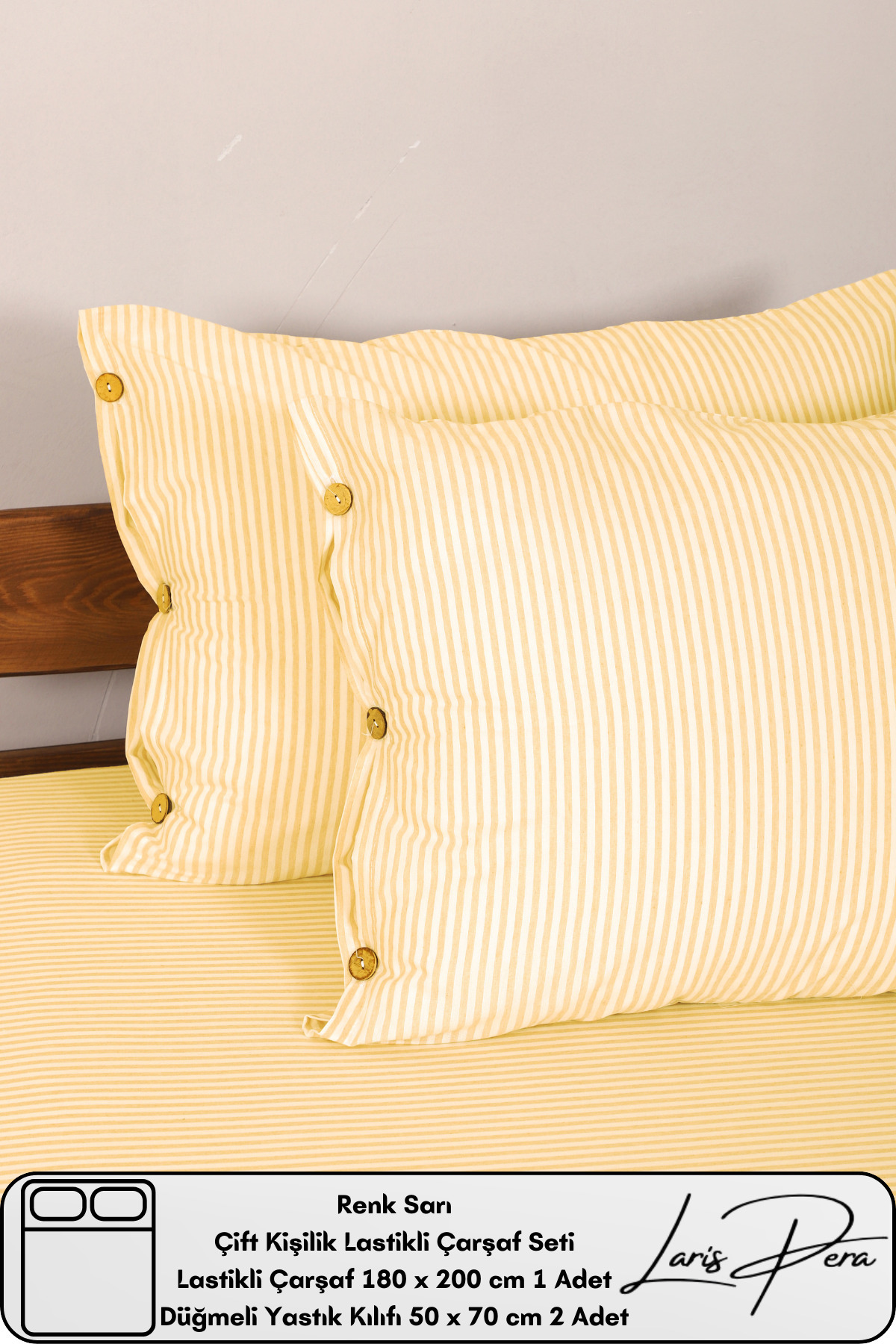 Çift Kişilik Lastikli Çarşaf Seti Pamuklu İplik Boyalı 180x200cm Düğmeli Yastık Kılıfı(50x70cm2Adet) Çift Kişilik Lastikli Çarşaf Seti Pamuklu İplik Boyalı 180x200cm Düğmeli Yastık Kılıfı(50x70cm2Adet) çizgilicarsafsetick 180 x 200