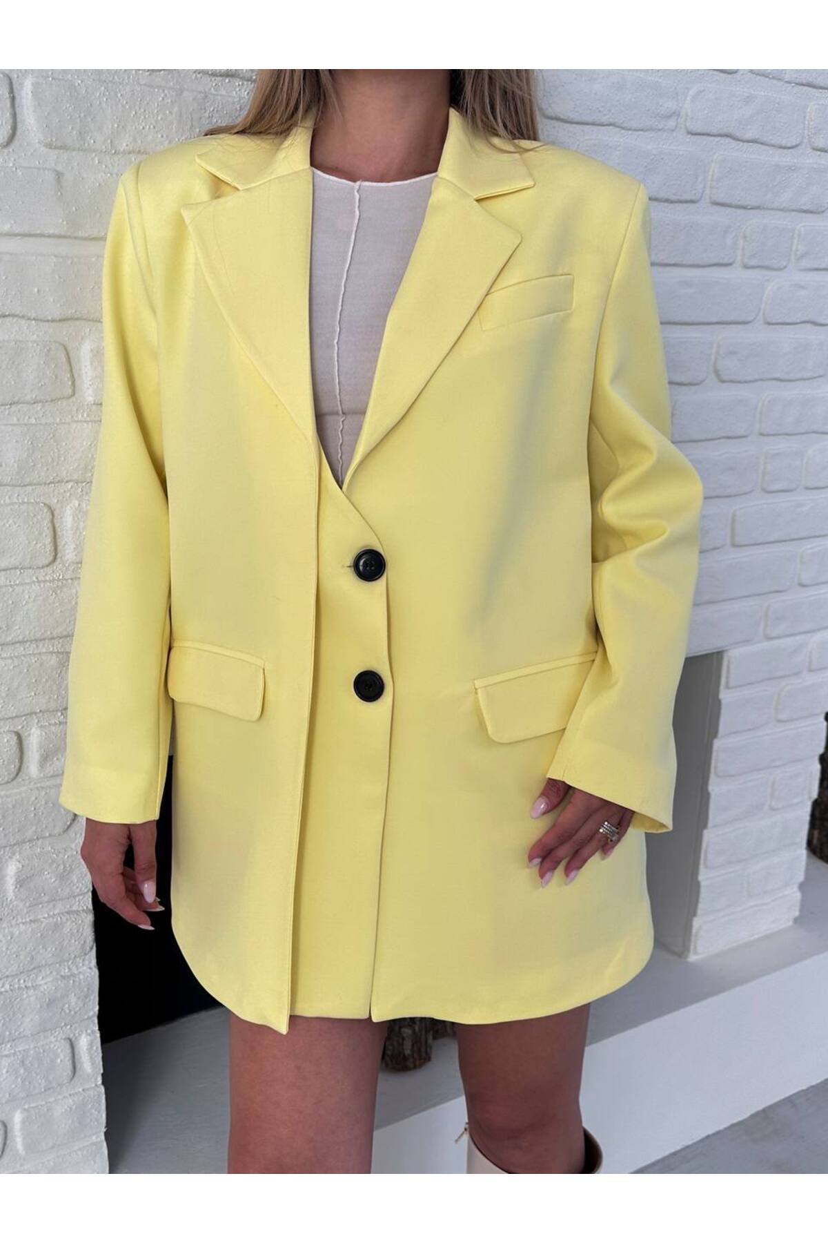 Tasarım Çift Kapaklı Blazer Ceket Tasarım Çift Kapaklı Blazer Ceket ktlmcktt XL