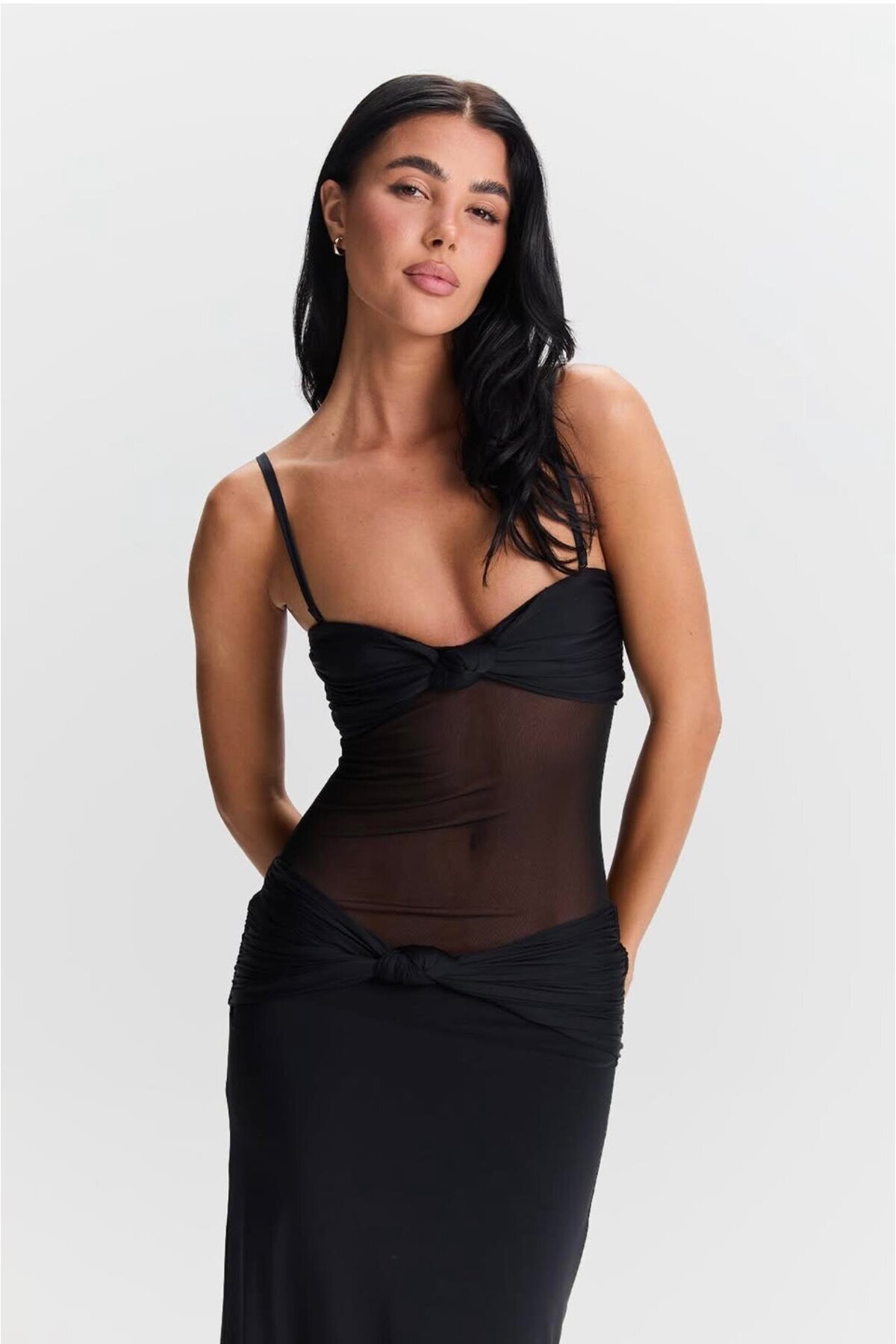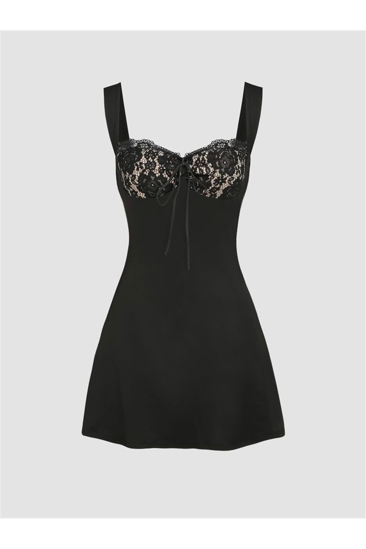Transparan Detaylı Siyah Elbise Transparan Detaylı Siyah Elbise 1337 L