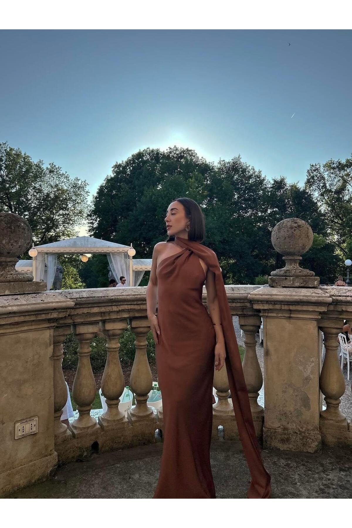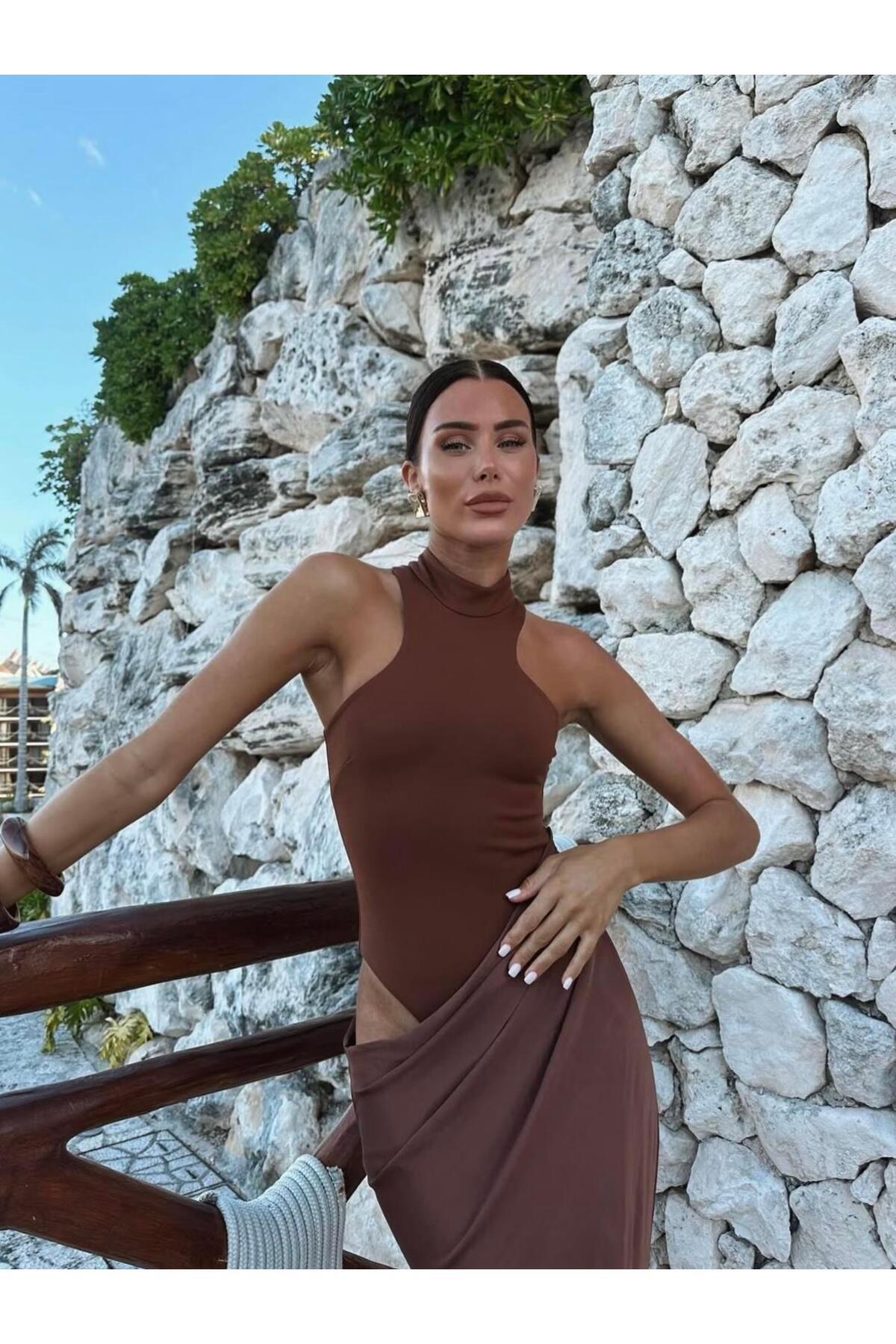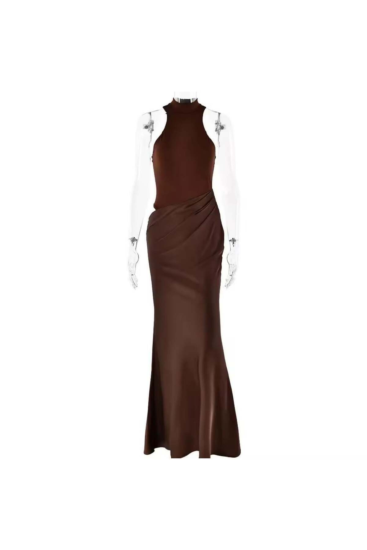 Yüksek Yaka Saten Drapeli Elbise Yüksek Yaka Saten Drapeli Elbise 1355 L