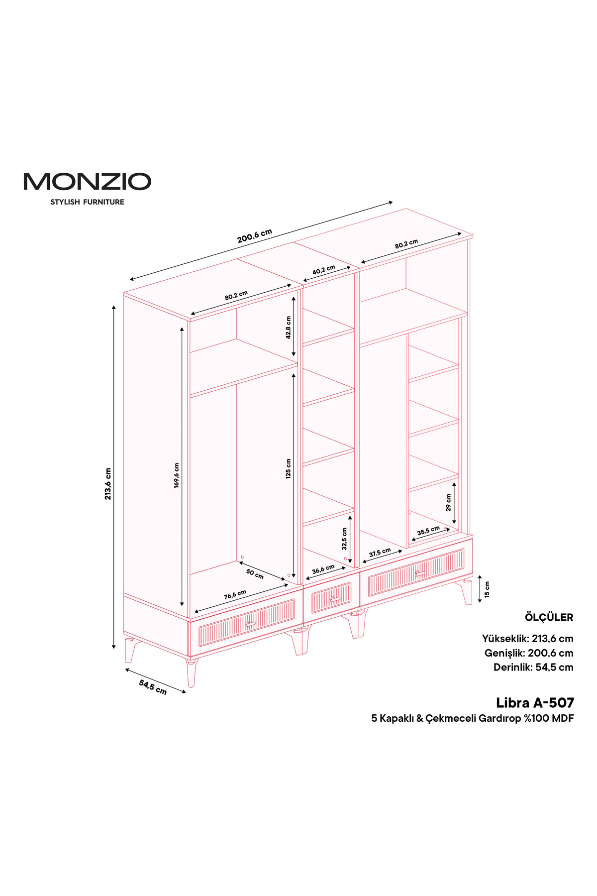 Libra 5 Kapaklı Çekmeceli Gardırop %100 MDF Libra 5 Kapaklı Çekmeceli Gardırop %100 MDF DA507 213 cm