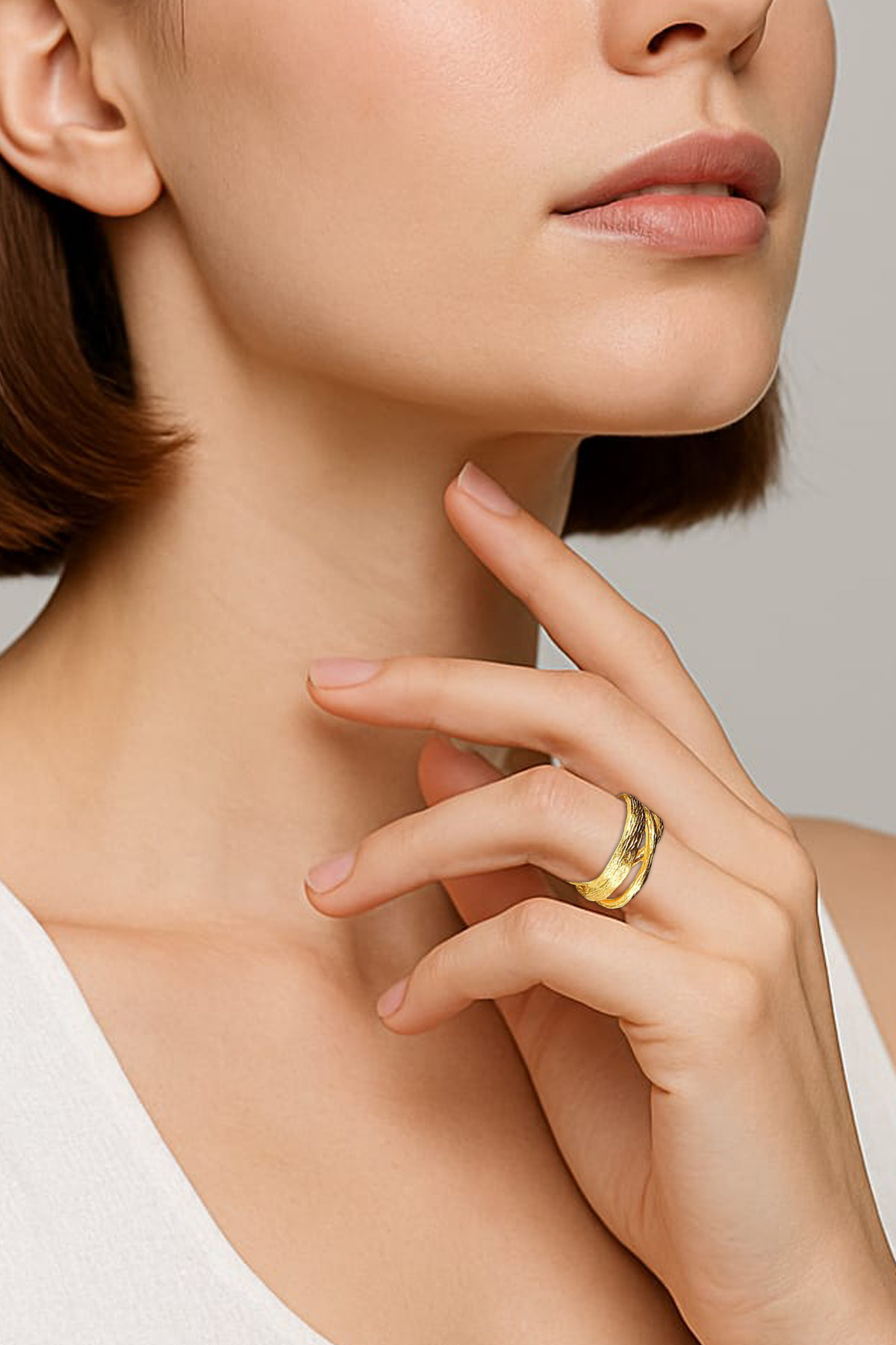 Deniz Kabuk Desenli Altın Renk Kadın Yüzük Deniz Kabuk Desenli Altın Renk Kadın Yüzük GLRN00782 تک سایز