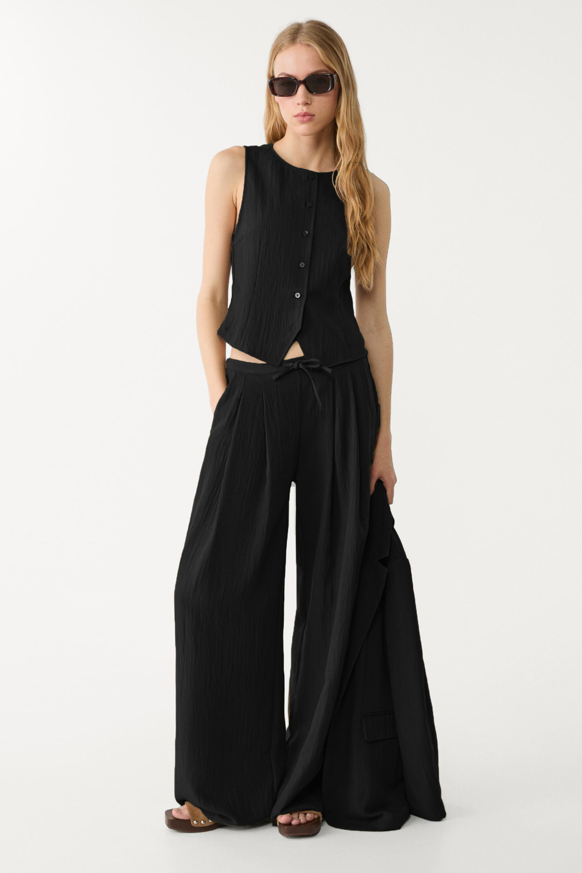 Keten Modal Karışımlı Bol Kesim Beli Lastikli Siyah Pantolon Keten Modal Karışımlı Bol Kesim Beli Lastikli Siyah Pantolon 8732P XL