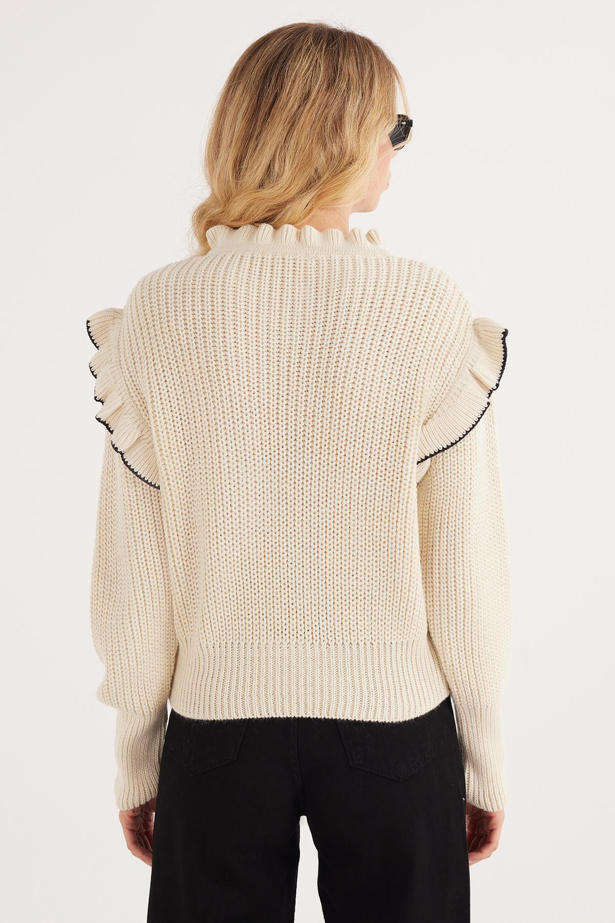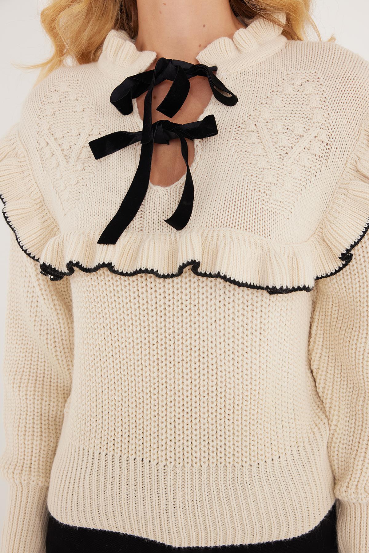 Slim Fit Dar Kesim Balıkçı Yaka Fırfır Detaylı Bej Kazak Slim Fit Dar Kesim Balıkçı Yaka Fırfır Detaylı Bej Kazak BYKZ2508 Standart