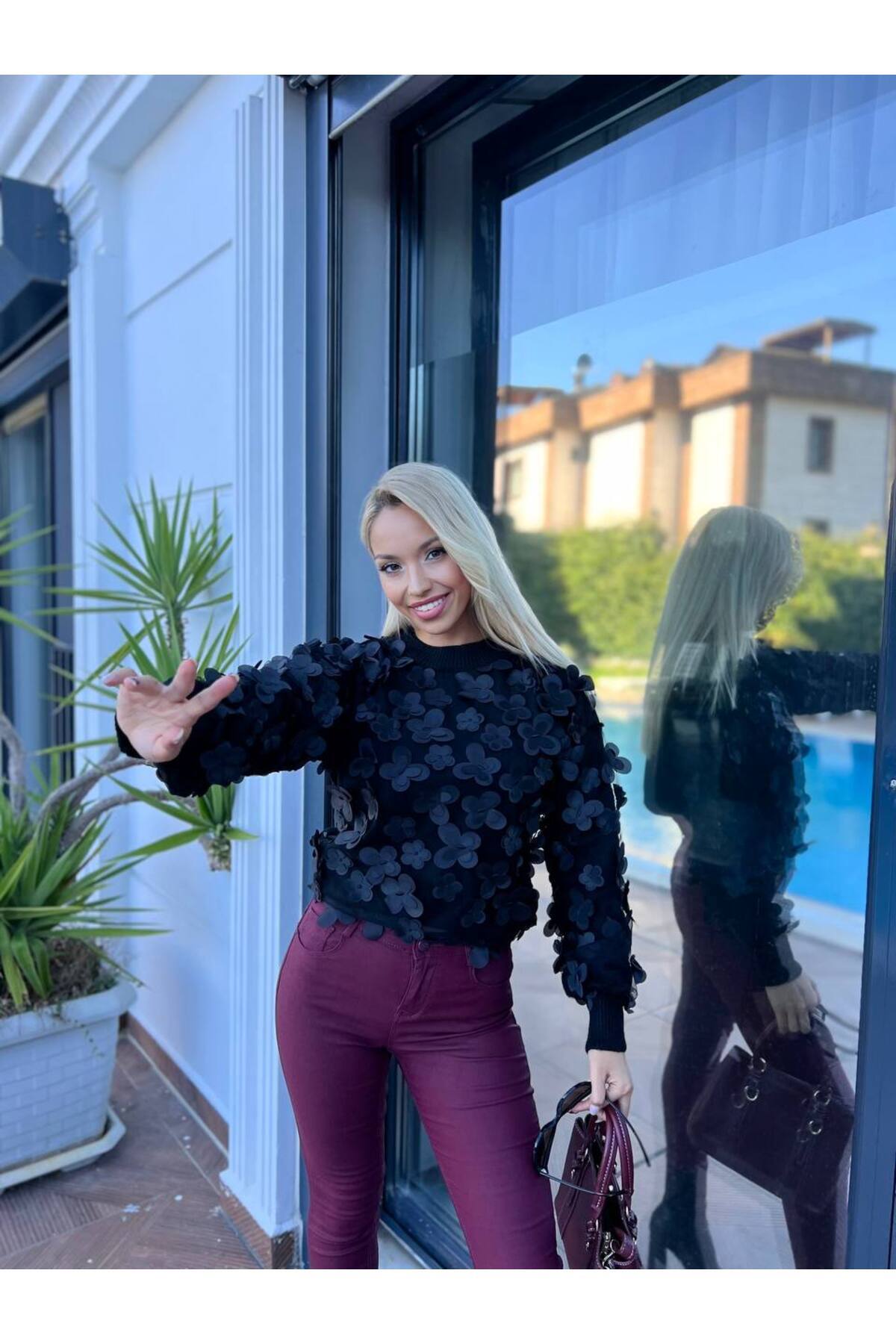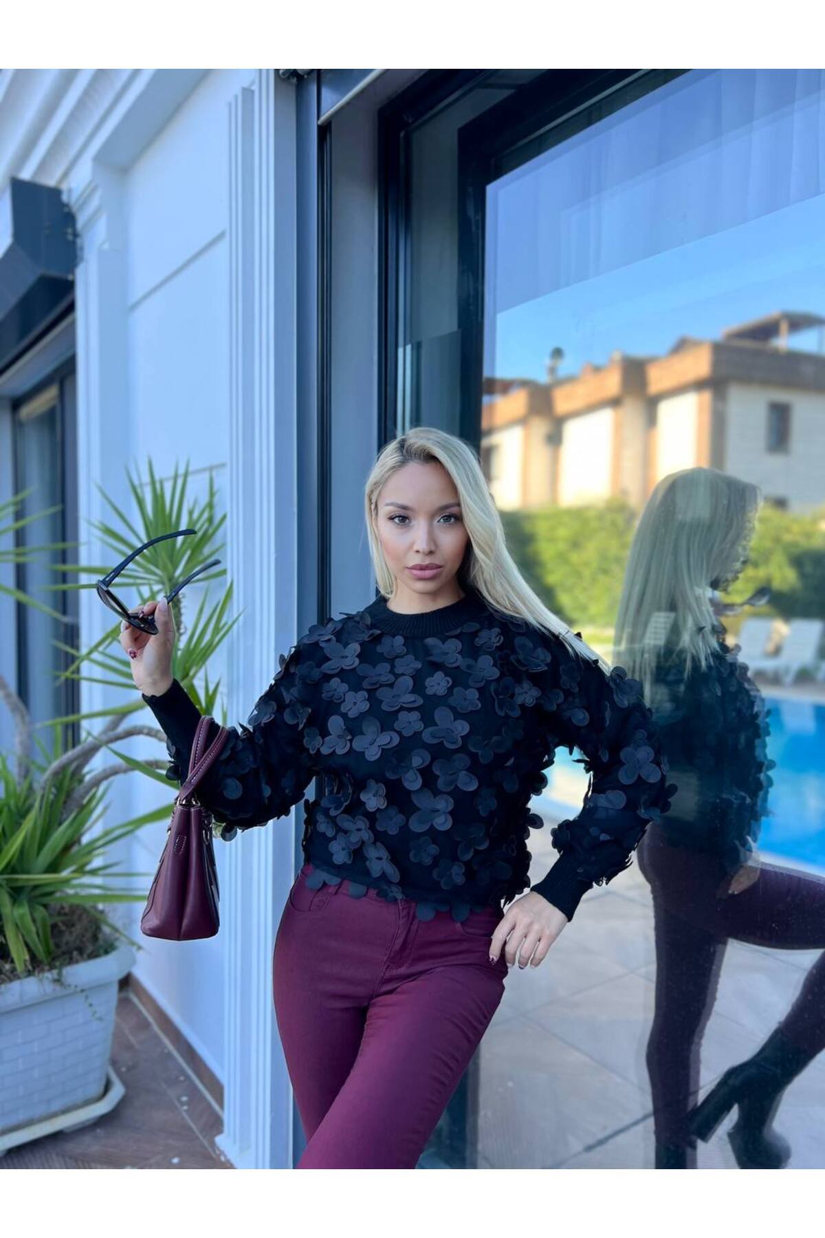 Çiçek Aksesuar Dantelli Şardonlu Triko Kazak Çiçek Aksesuar Dantelli Şardonlu Triko Kazak 25531 Standart