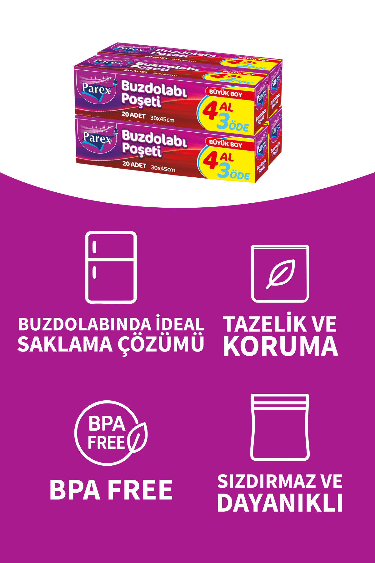 Buzdolabı Poşeti Büyük Boy 4 Al 3 Öde (4*20) 30 x 45 cm Üçlü Set Buzdolabı Poşeti Büyük Boy 4 Al 3 Öde (4*20) 30 x 45 cm Üçlü Set PRX0603-3 تک سایز