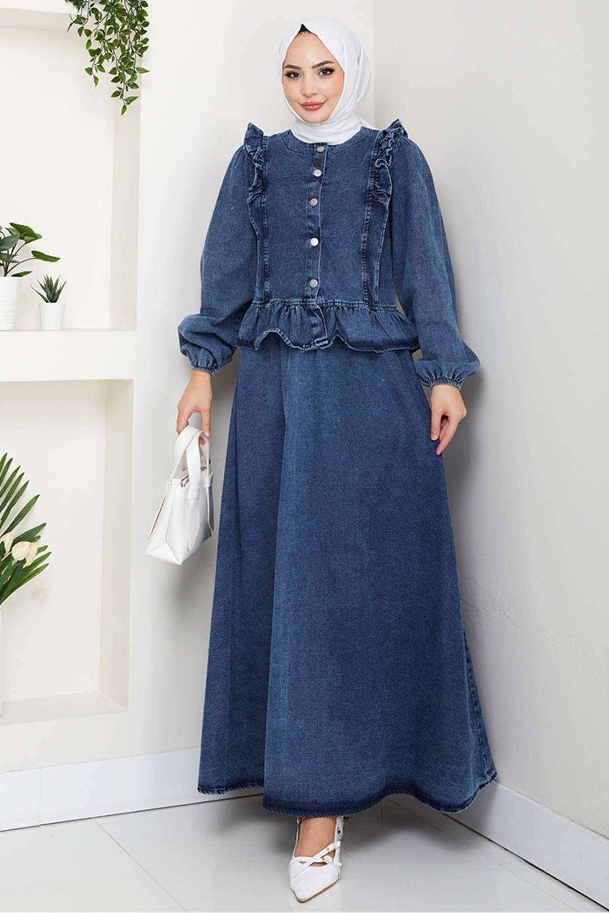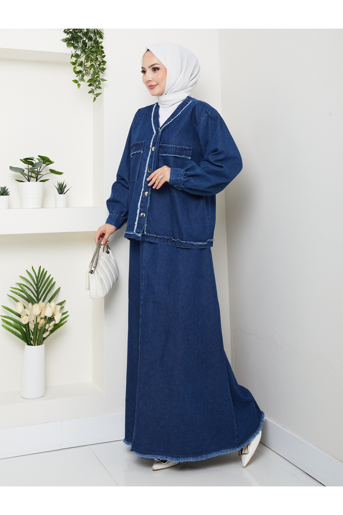 CEKETLI SAÇAKLI DETAYLİ MAVİ KOT TESETTÜR ETEKLİ TAKIM KOT KUMAŞ CEKETLI SAÇAKLI DETAYLİ MAVİ KOT TESETTÜR ETEKLİ TAKIM KOT KUMAŞ 905 48