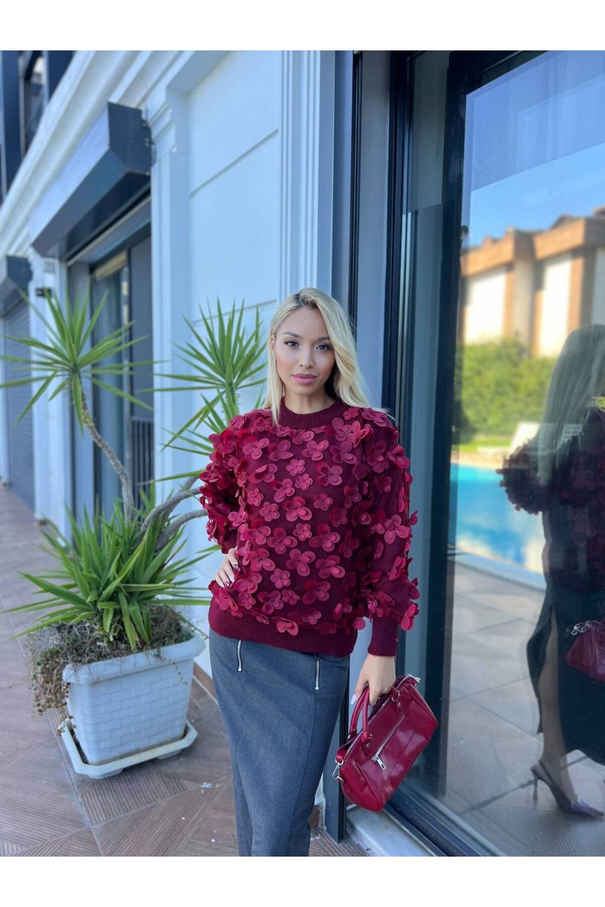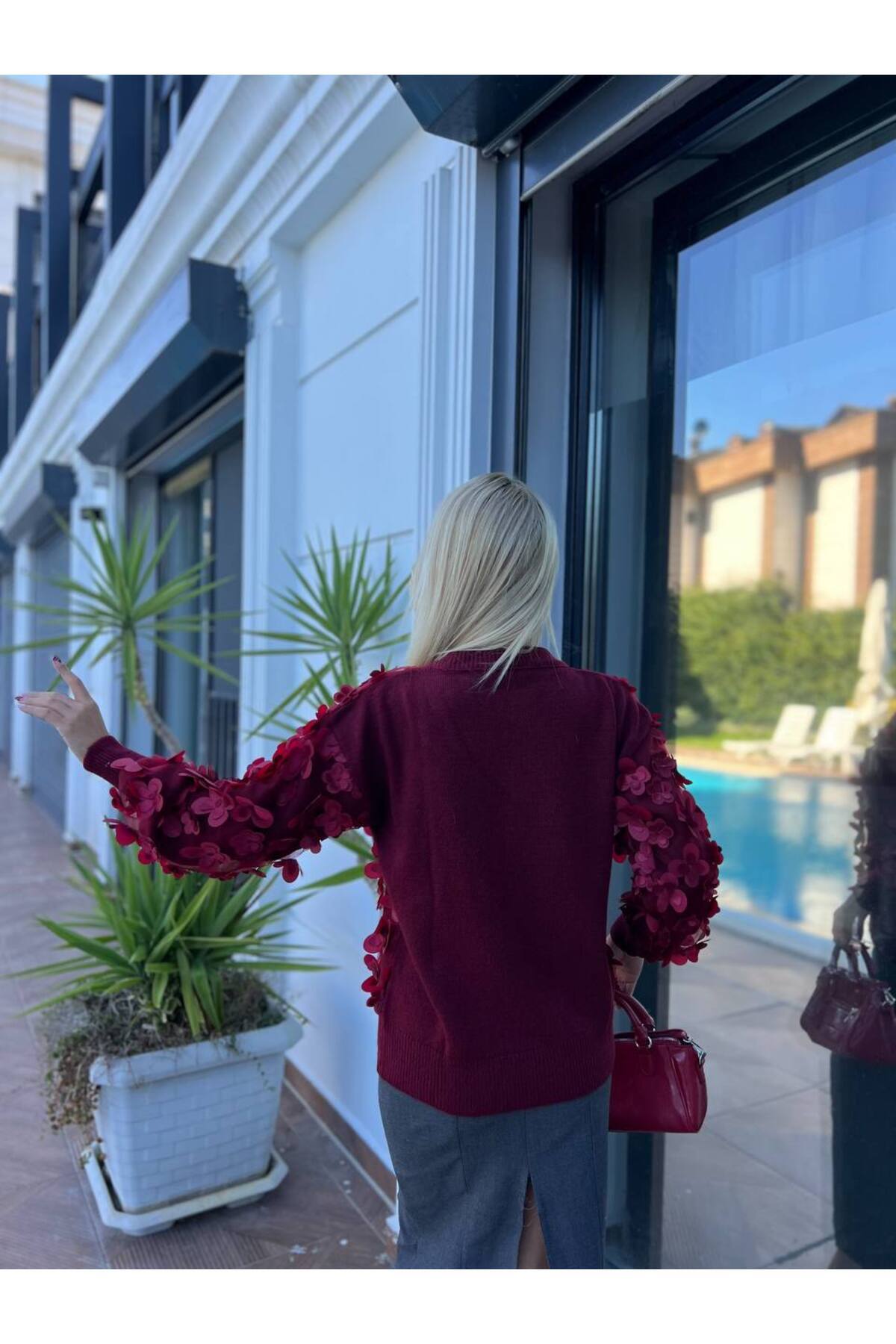 Çiçek Aksesuar Dantelli Şardonlu Triko Kazak Çiçek Aksesuar Dantelli Şardonlu Triko Kazak 25531 Standart