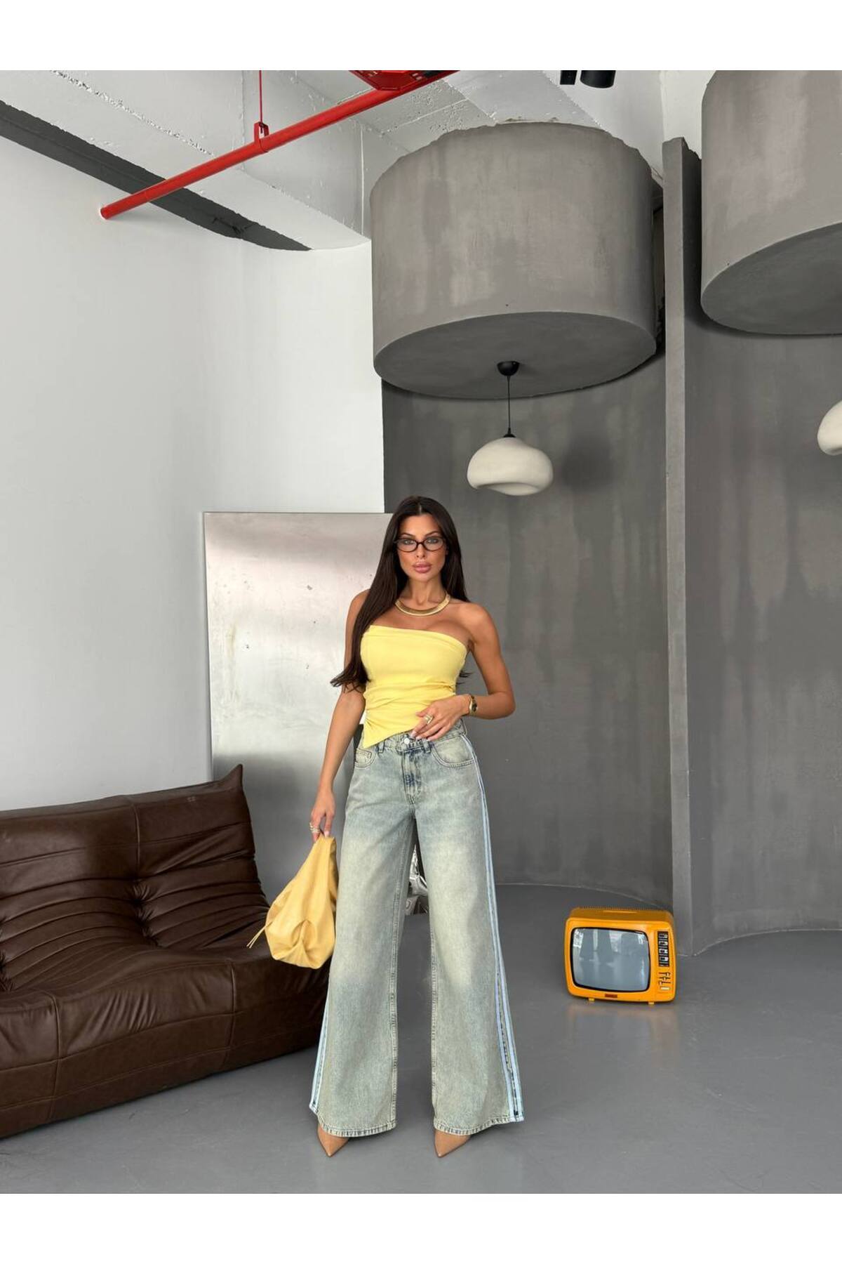 TREND ÖZEL TASASARIM WİDE LEG PALAZZO DENİM JEAN PANTLON TREND ÖZEL TASASARIM WİDE LEG PALAZZO DENİM JEAN PANTLON ELLAKIŞ L