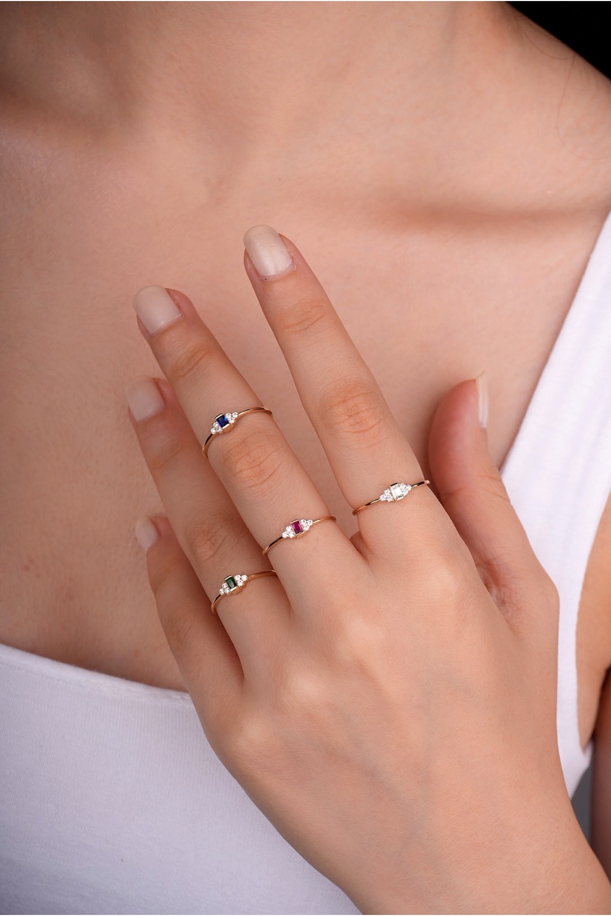 14 Ayar Altın Pırlanta Kesim Baget Taşlı Yüzük 14 Ayar Altın Pırlanta Kesim Baget Taşlı Yüzük YZK16 20