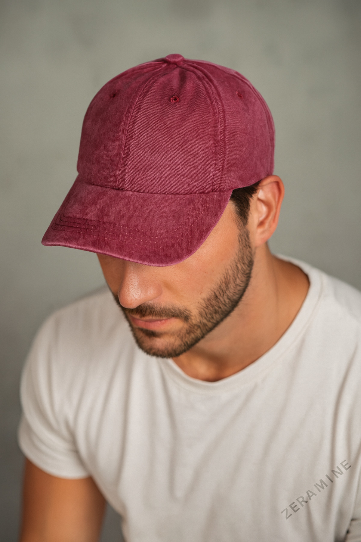 Unisex Yıkamalı Eskitme Şapka Bordo Şapka Unisex Yıkamalı Eskitme Şapka Bordo Şapka Eskitme düz Standart