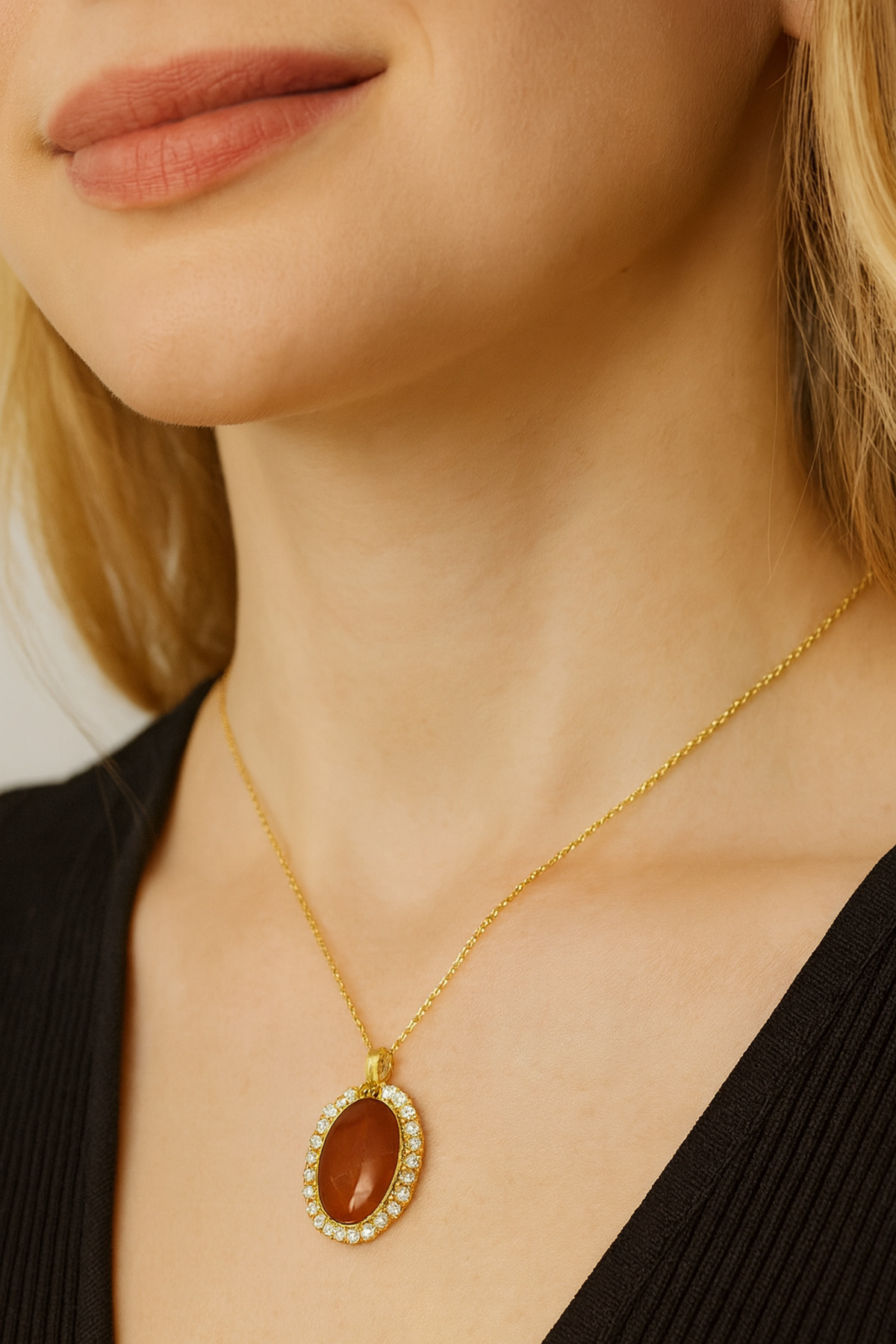 Kolye Kadınlara Özel Akik Doğal Taş Elips Kesim Kolye Şık Tasarım Kolye Kadınlara Özel Akik Doğal Taş Elips Kesim Kolye Şık Tasarım KLYDGL-1556