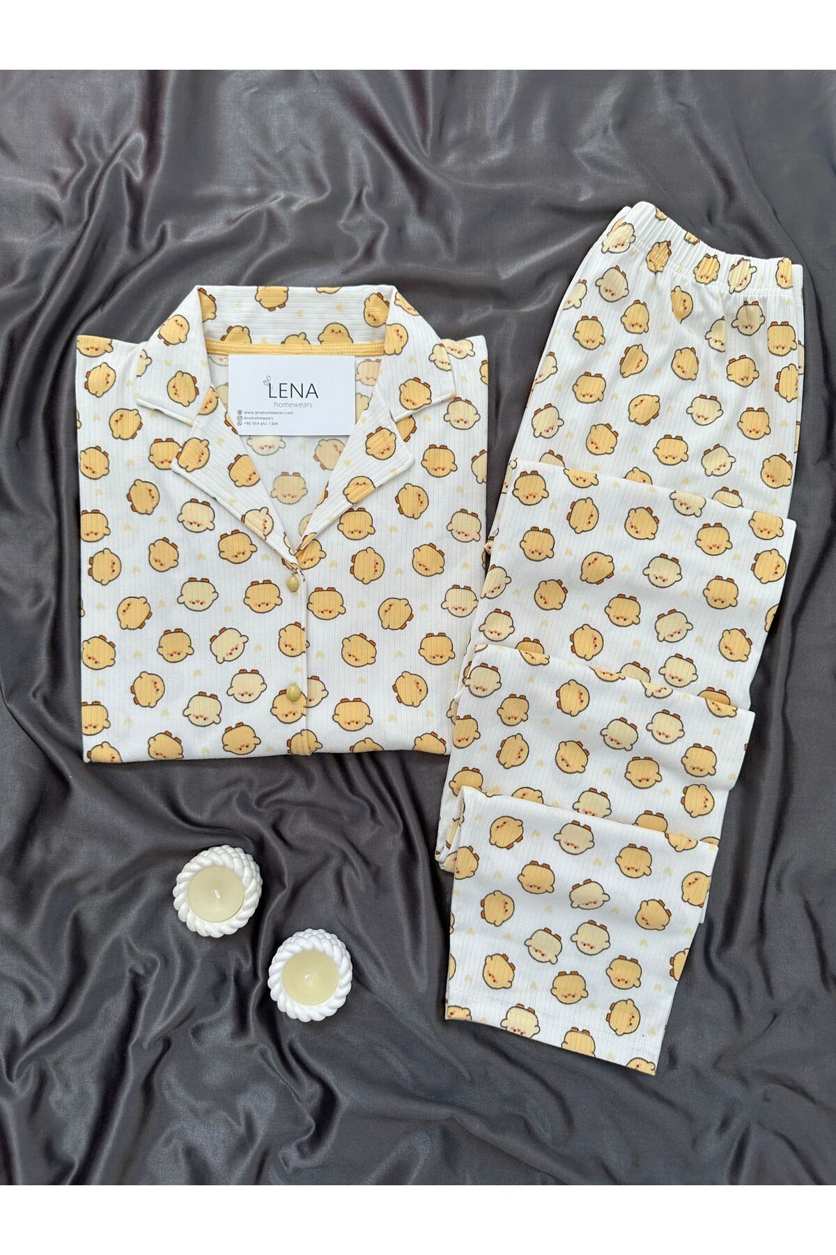 Ekru Yaprak Desenli Fiyonk Detaylı Pijama Takımı Ekru Yaprak Desenli Fiyonk Detaylı Pijama Takımı 2014 2XL