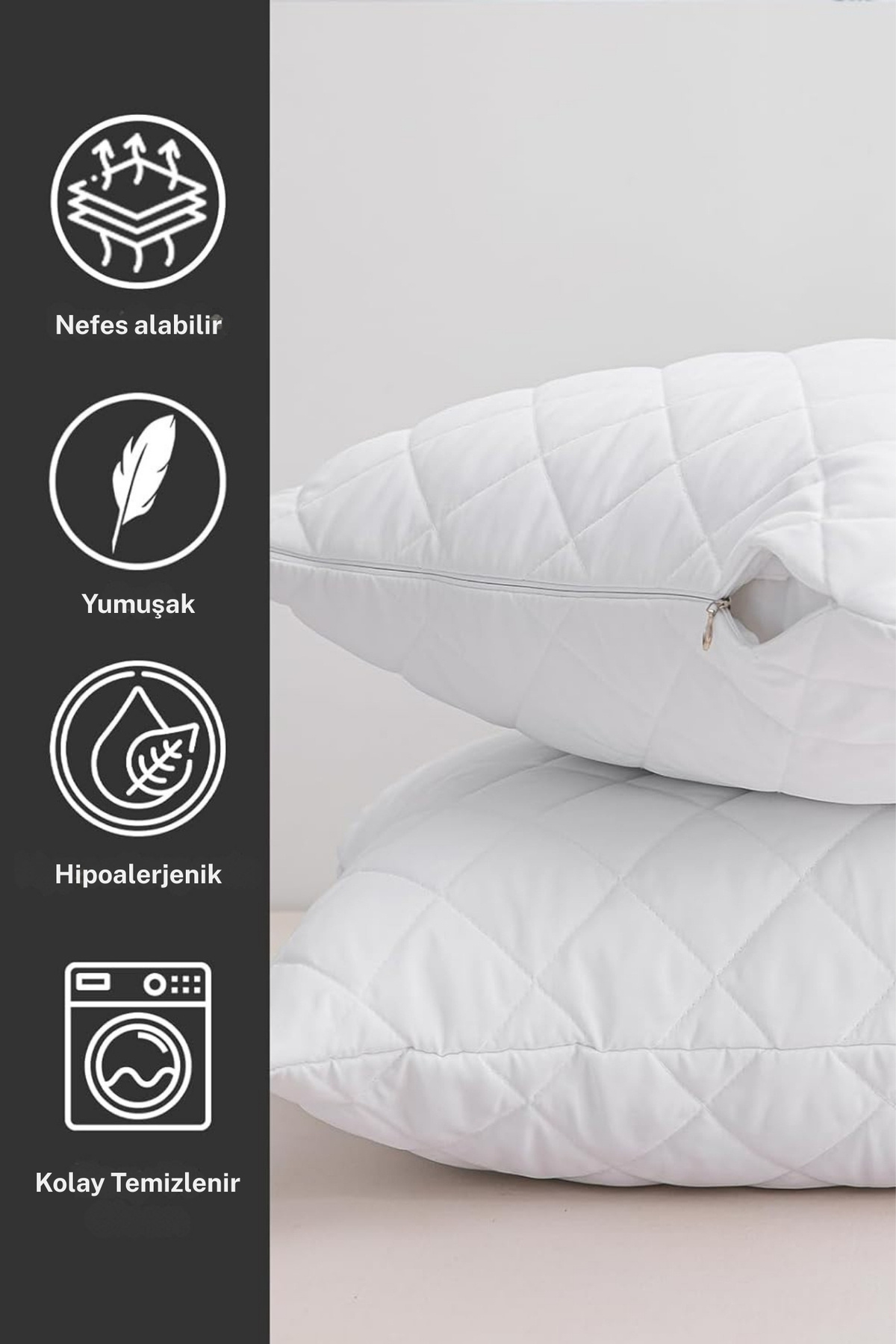Kapitone Fermuarlı Yastık Koruyucu Alez 1 Adet Ter, Ağız Sıvı Geçirmez Beyaz - 50x70 cm Kapitone Fermuarlı Yastık Koruyucu Alez 1 Adet Ter, Ağız Sıvı Geçirmez Beyaz - 50x70 cm YASTIK-KORUYUCU تک سایز