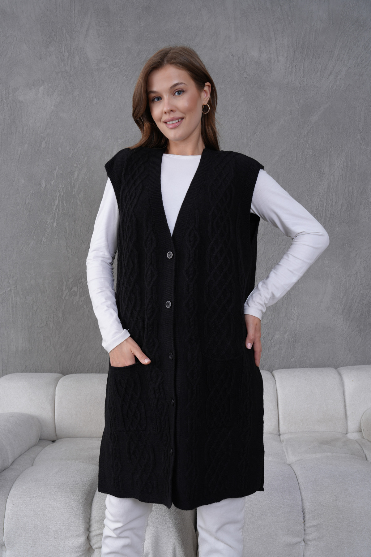 Gri Uzun Selanik Örgü Triko Yelek Gri Uzun Selanik Örgü Triko Yelek TRİKO YELEK L