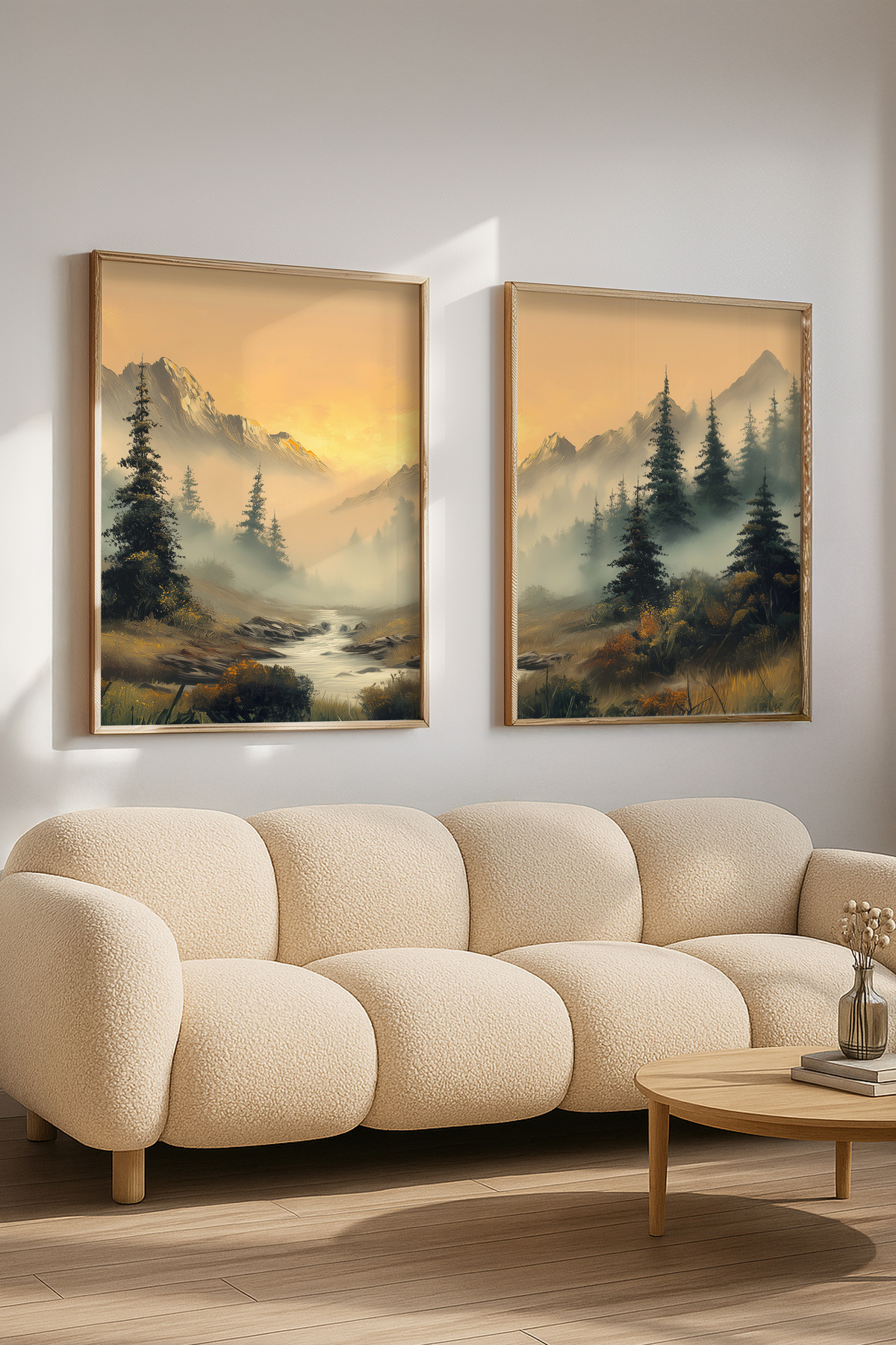 Ahşap çerçeveli Yağlıboya Efektli Dağ Manzaralı İkili Vintage Tablo Seti, Salon tablosu Yuna328 Ahşap çerçeveli Yağlıboya Efektli Dağ Manzaralı İkili Vintage Tablo Seti, Salon tablosu Yuna328 yuna328 50 x 70
