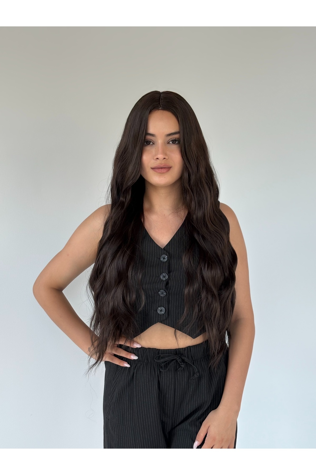 Küllü Kahve Uzun Dalgalı Vip Peruk – Doğal Görünüm Küllü Kahve Uzun Dalgalı Vip Peruk – Doğal Görünüm FP-002 تک سایز