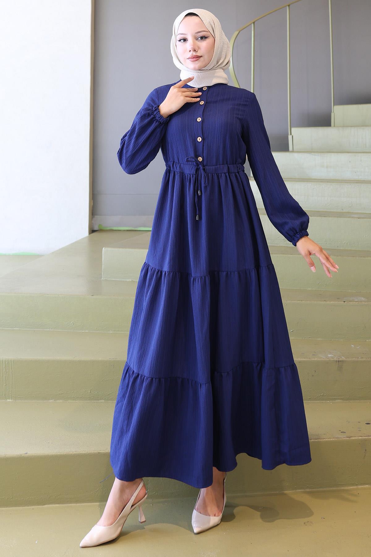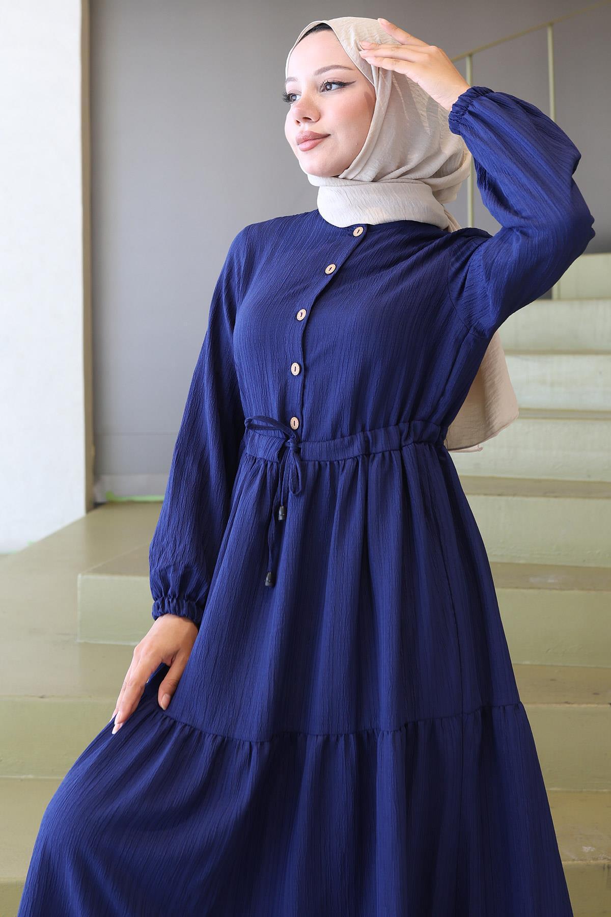 Elisa Büzgülü Düğmeli Elbise Lacivert HM2805 Elisa Büzgülü Düğmeli Elbise Lacivert HM2805 48