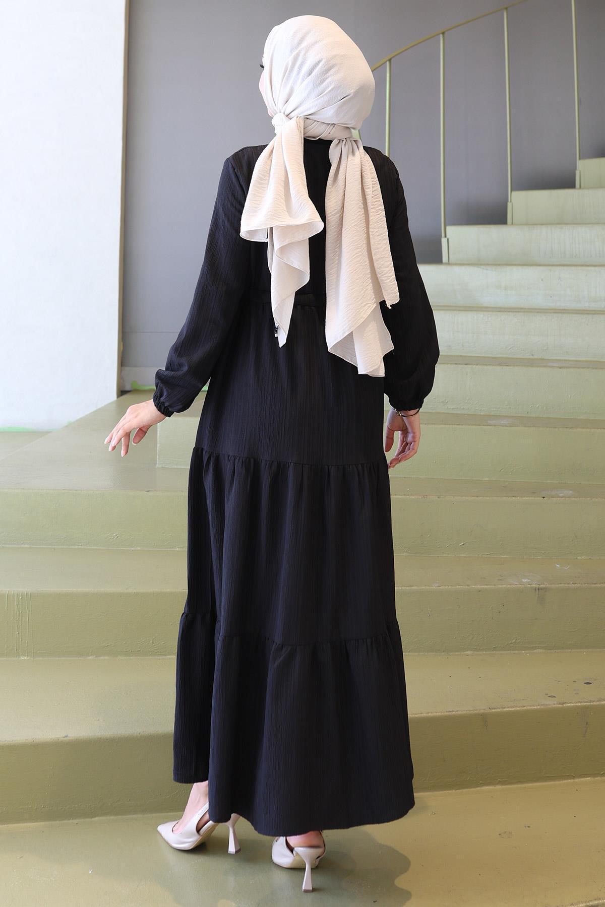 Elisa Büzgülü Düğmeli Elbise Siyah HM2805 Elisa Büzgülü Düğmeli Elbise Siyah HM2805 48