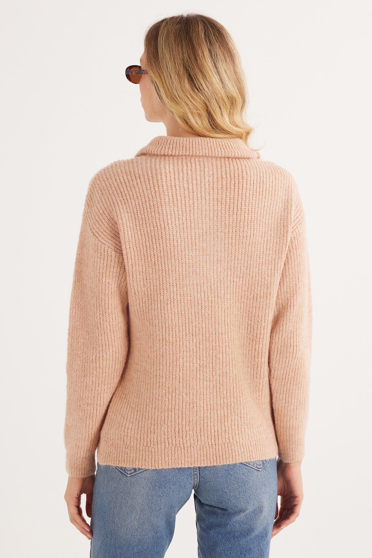 Kadın Oversize Geniş Kesim Dokumalı Fermuarlı Yaka Pudra Kazak Kadın Oversize Geniş Kesim Dokumalı Fermuarlı Yaka Pudra Kazak BYKZ2512 Standart
