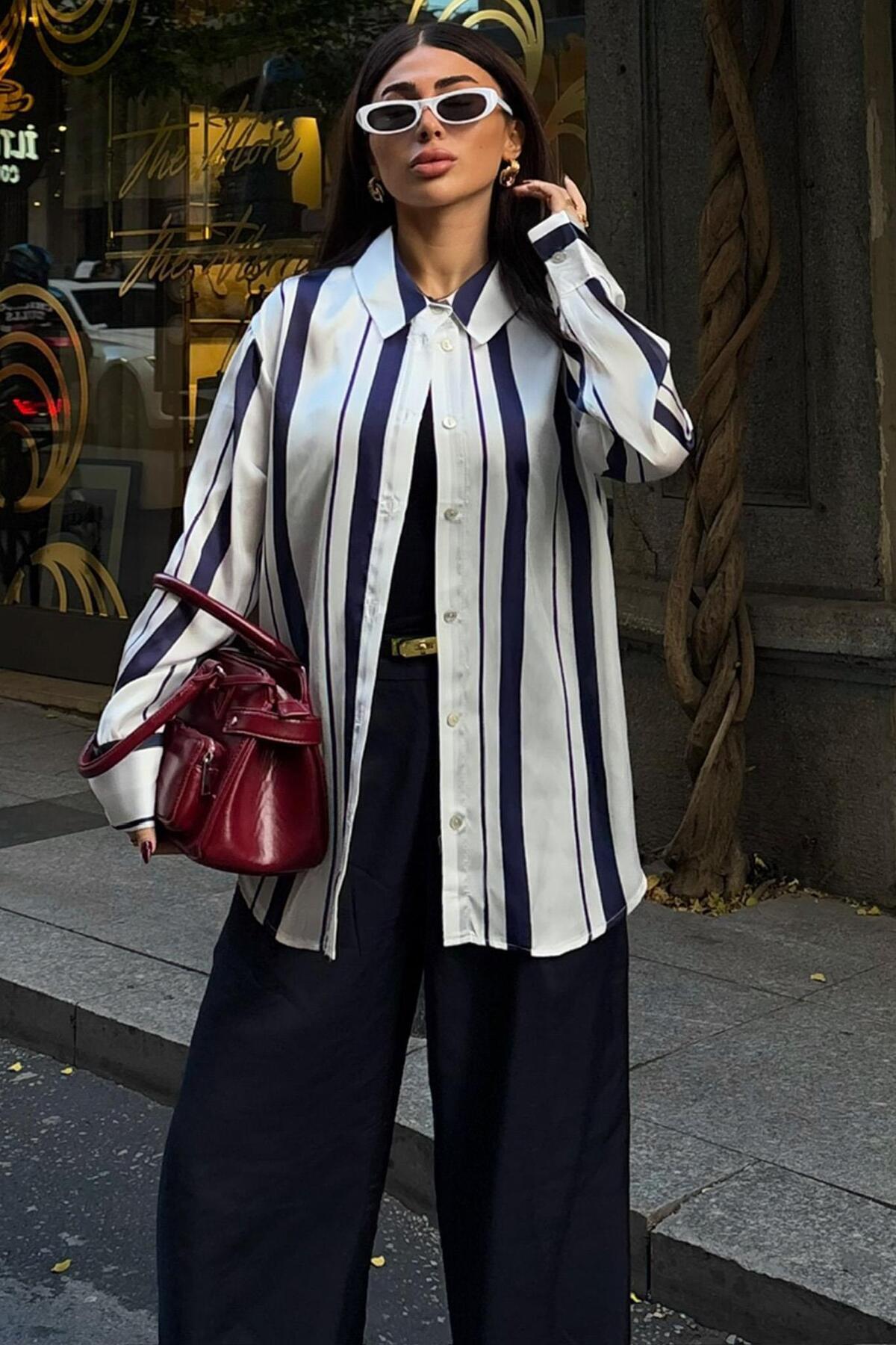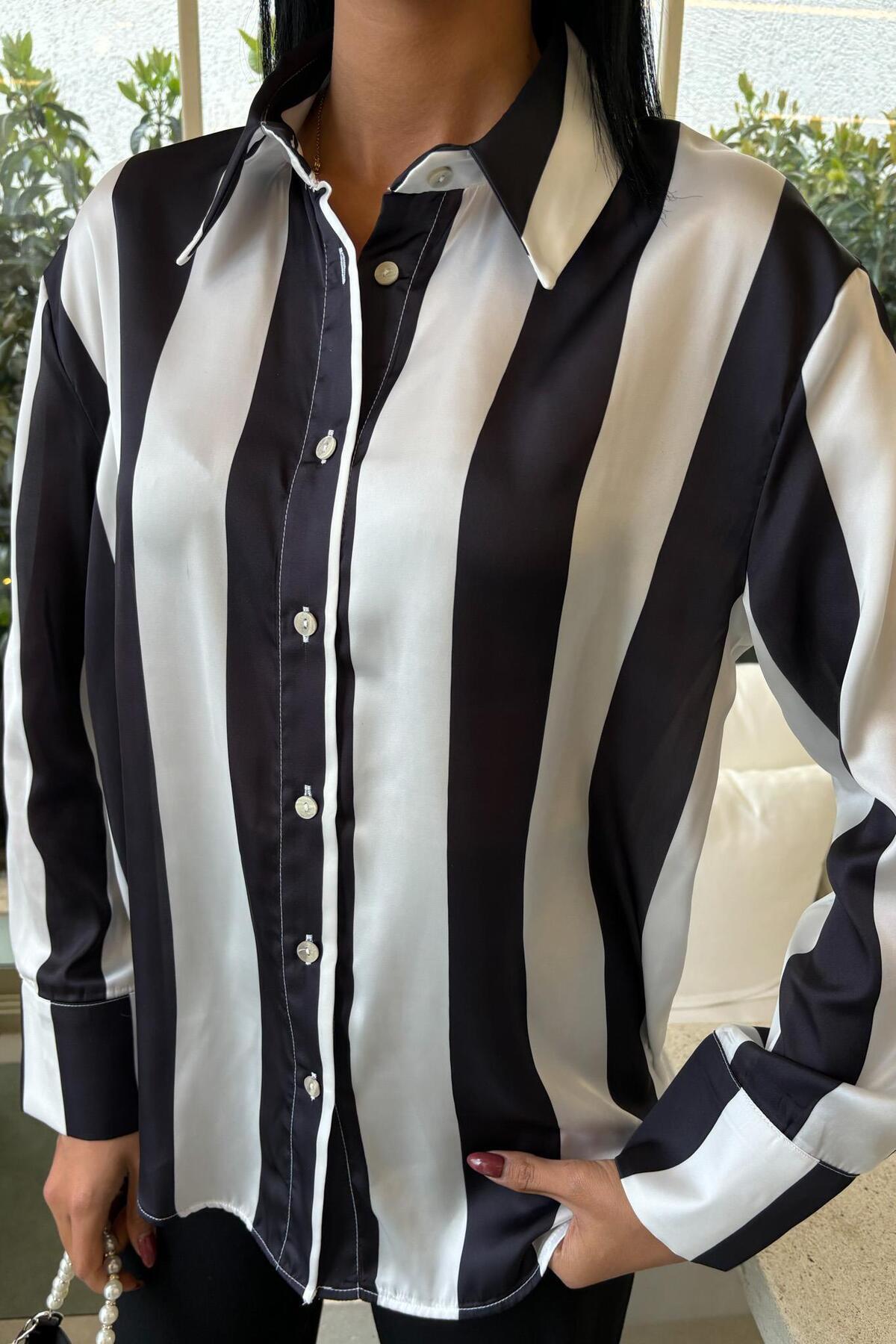 Çubuk Çizgili Şifon Saten Gömlek 3428 R7-K-K5 Çubuk Çizgili Şifon Saten Gömlek 3428 R7-K-K5 S5Y3428 XL
