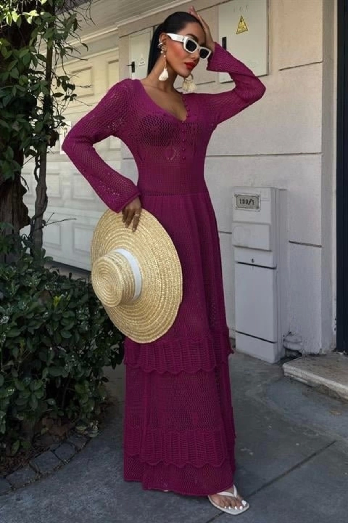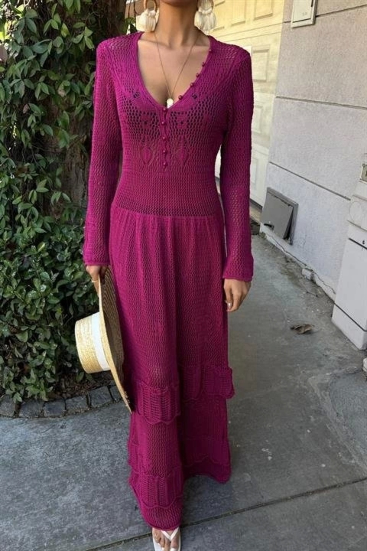 Düğme Detaylı ve Kat Etekli Etnik Elbise 2859 Düğme Detaylı ve Kat Etekli Etnik Elbise 2859 S5Y2859 Standart