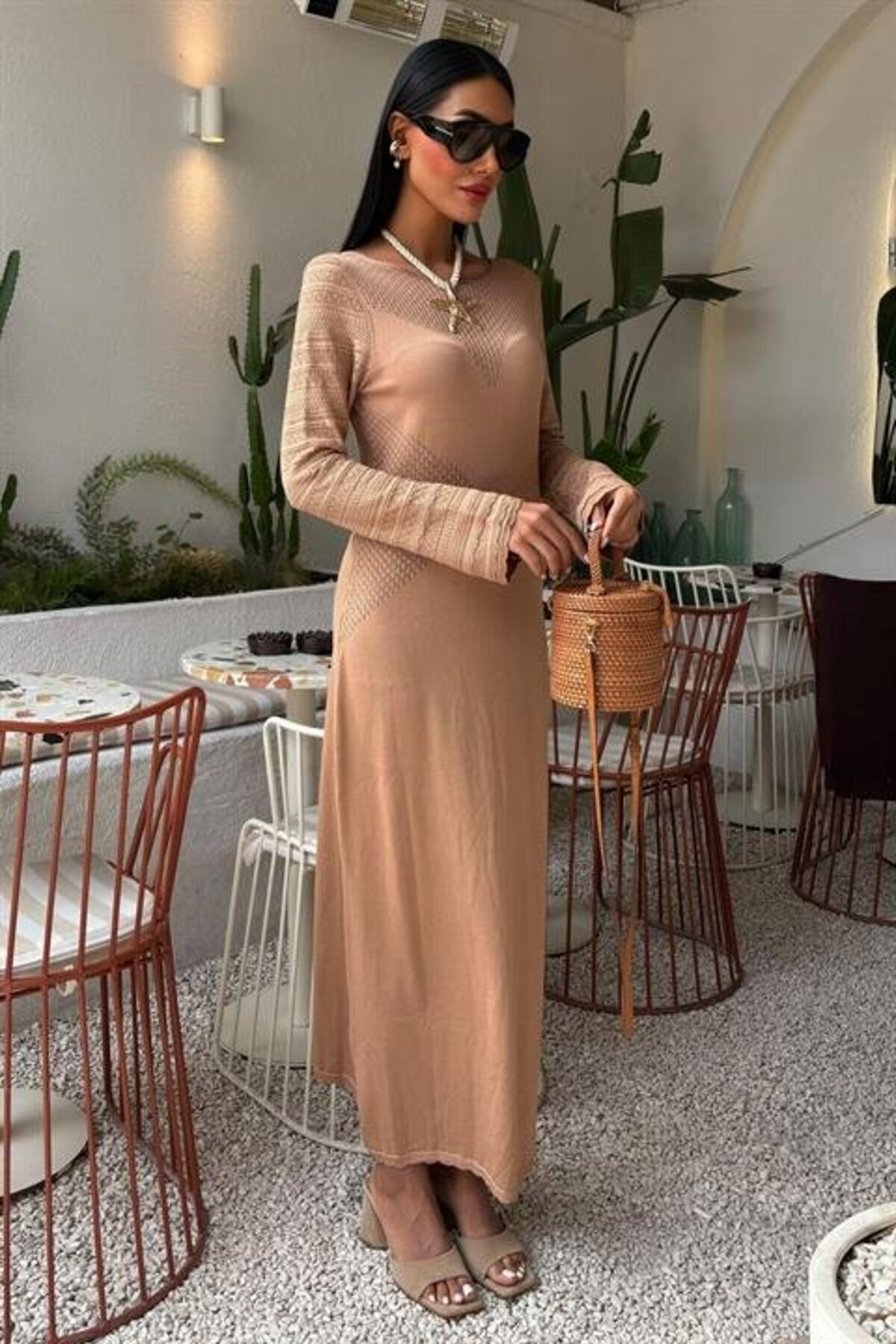 Sırt Dekolteli İspanyol Kol Triko Elbise -SİYAH/EKRU Sırt Dekolteli İspanyol Kol Triko Elbise -SİYAH/EKRU S5Y2848 Standart