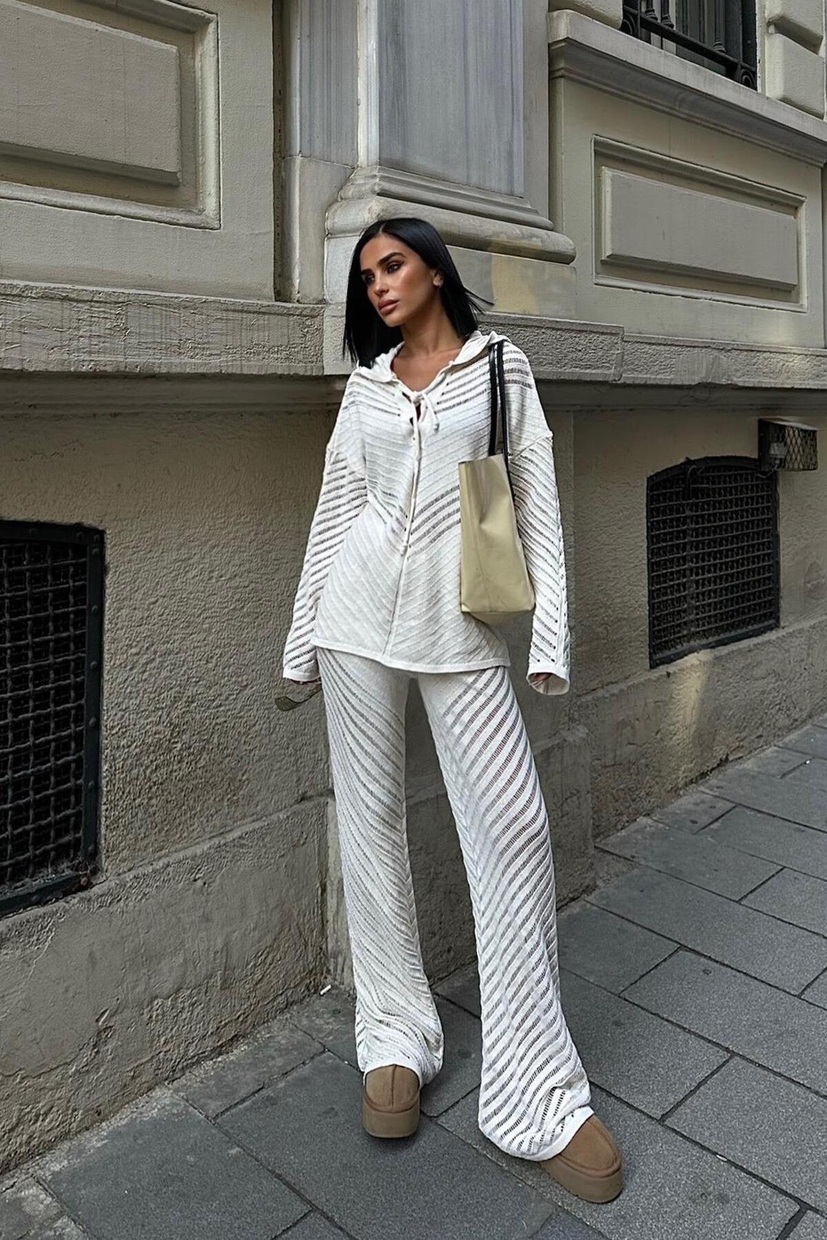 Saç Örgü Desenli Kuşaklı Triko Takım -SİYAH Saç Örgü Desenli Kuşaklı Triko Takım -SİYAH S6K10218 0