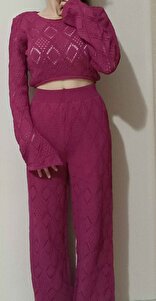 Göğüs Bağcık Detaylı Ajurlu Bluz Pantolon Takım 10098 Göğüs Bağcık Detaylı Ajurlu Bluz Pantolon Takım 10098 S5Y10098 36 - 40