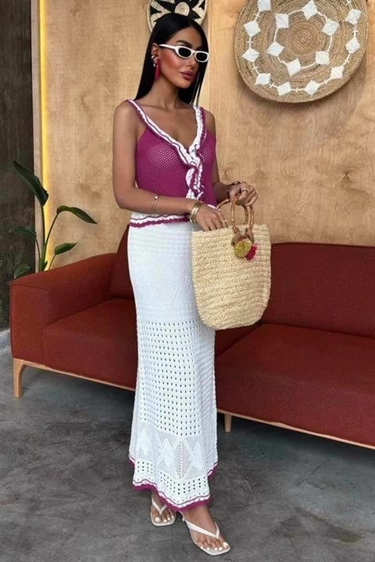 Fırfır Detaylı Uzun Etekli Triko Takım- Mürdüm Fırfır Detaylı Uzun Etekli Triko Takım- Mürdüm S5Y10115 Standart