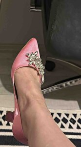 Kadın Pembe Saten Topuk Yaprak Taşlı Topuklu Ayakkabı Kadın Pembe Saten Topuk Yaprak Taşlı Topuklu Ayakkabı DS-BOSS 41