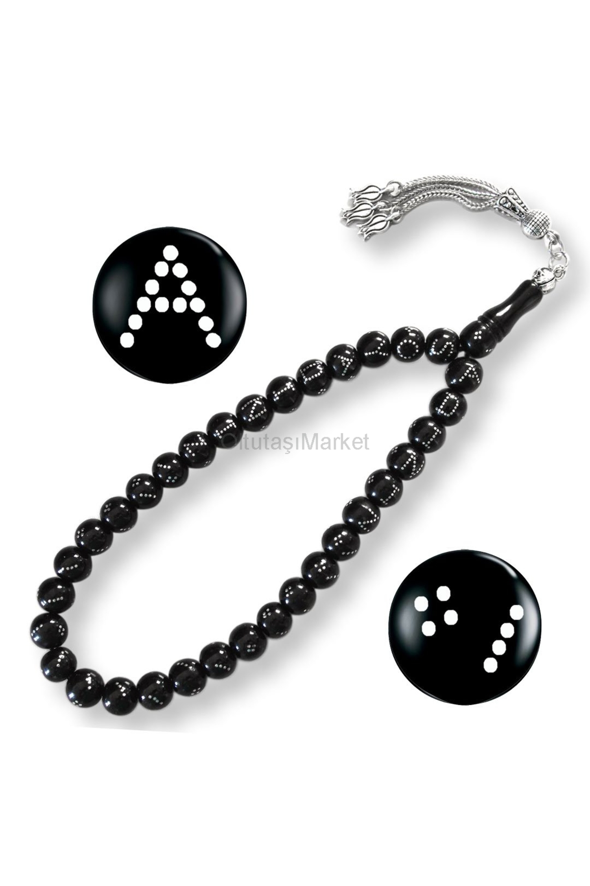 Erzurum Oltu taşı gümüş işlemeli yuvarlak bilek boy tesbih Erzurum Oltu taşı gümüş işlemeli yuvarlak bilek boy tesbih erz0018 تک سایز