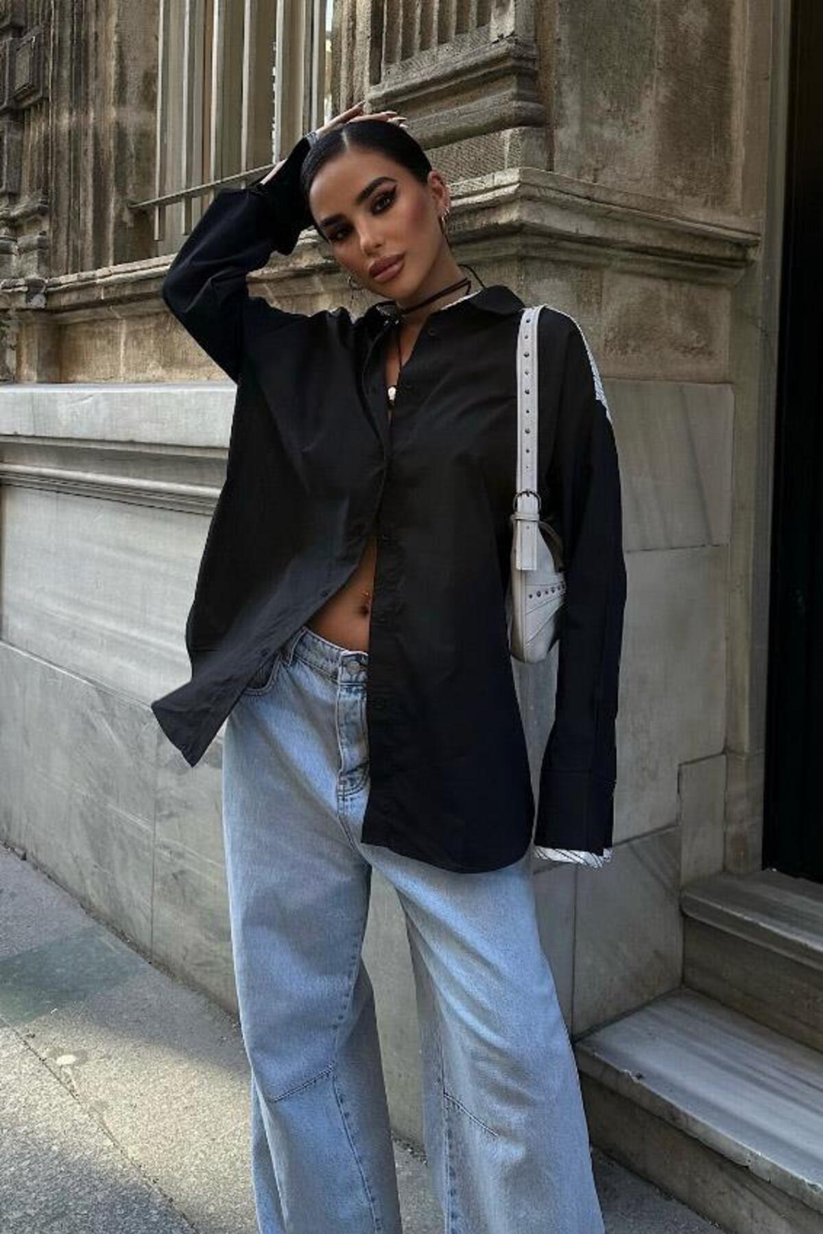 Bant Detaylı Oversize Poplin Gömlek 3436 Bant Detaylı Oversize Poplin Gömlek 3436 S5Y3436 XL