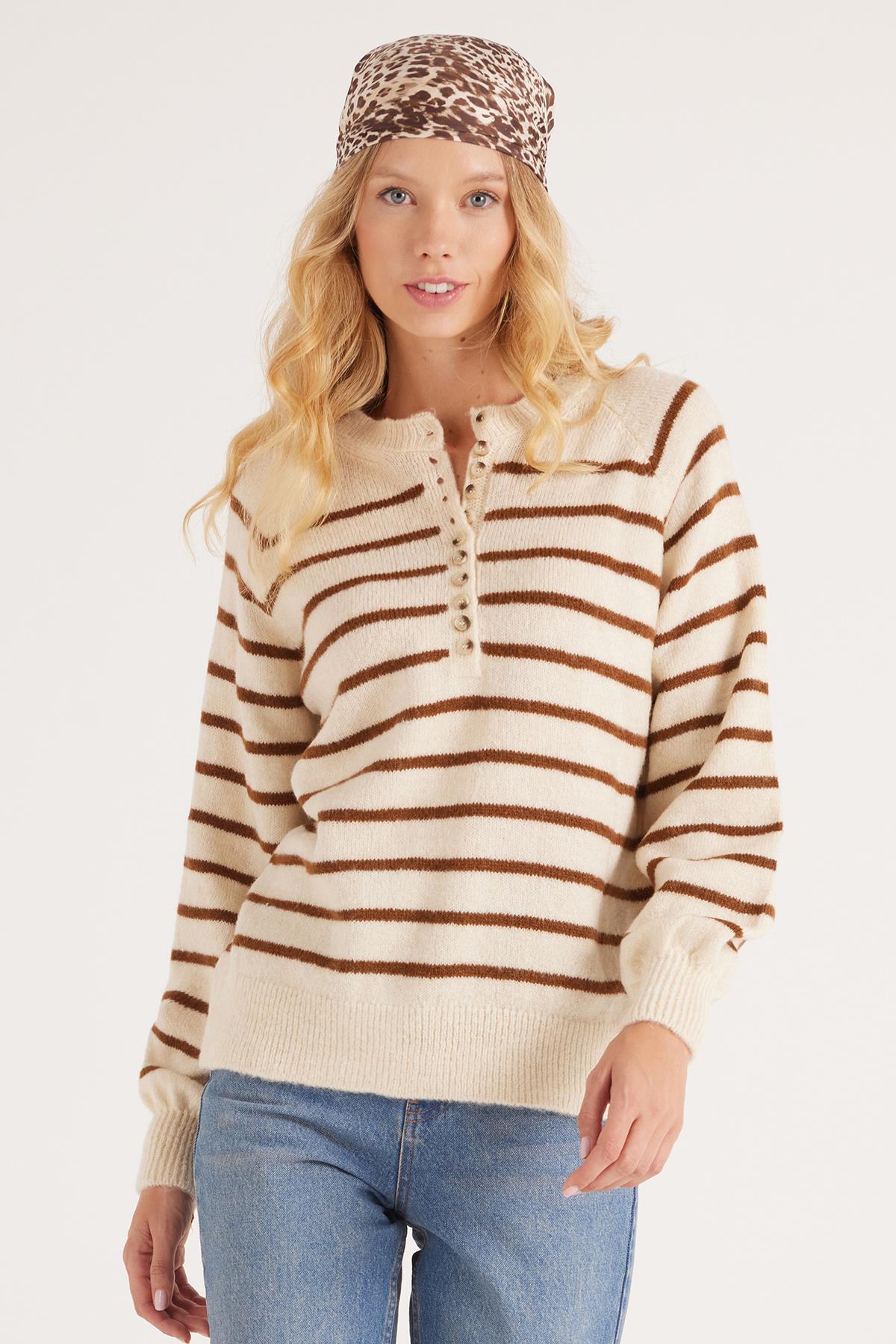 Kadın Slim Fit Dar Kesim Bisiklet Yaka Çizgili Siyah Kazak Kadın Slim Fit Dar Kesim Bisiklet Yaka Çizgili Siyah Kazak BYKZ2515 Standart