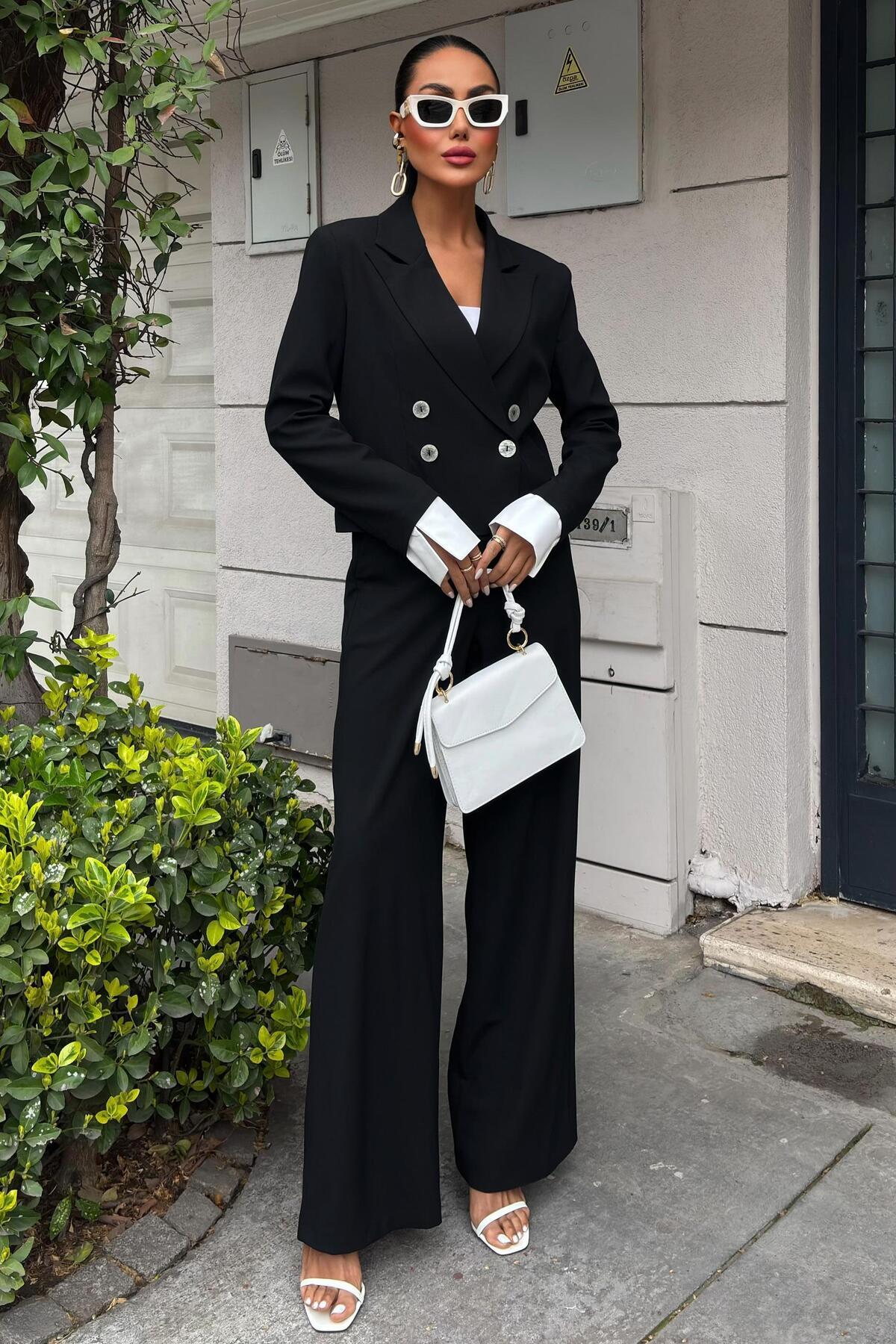 Manşetleri Garnili Kruvaze Ceketli Takım 10168 Manşetleri Garnili Kruvaze Ceketli Takım 10168 S5Y10168 XL