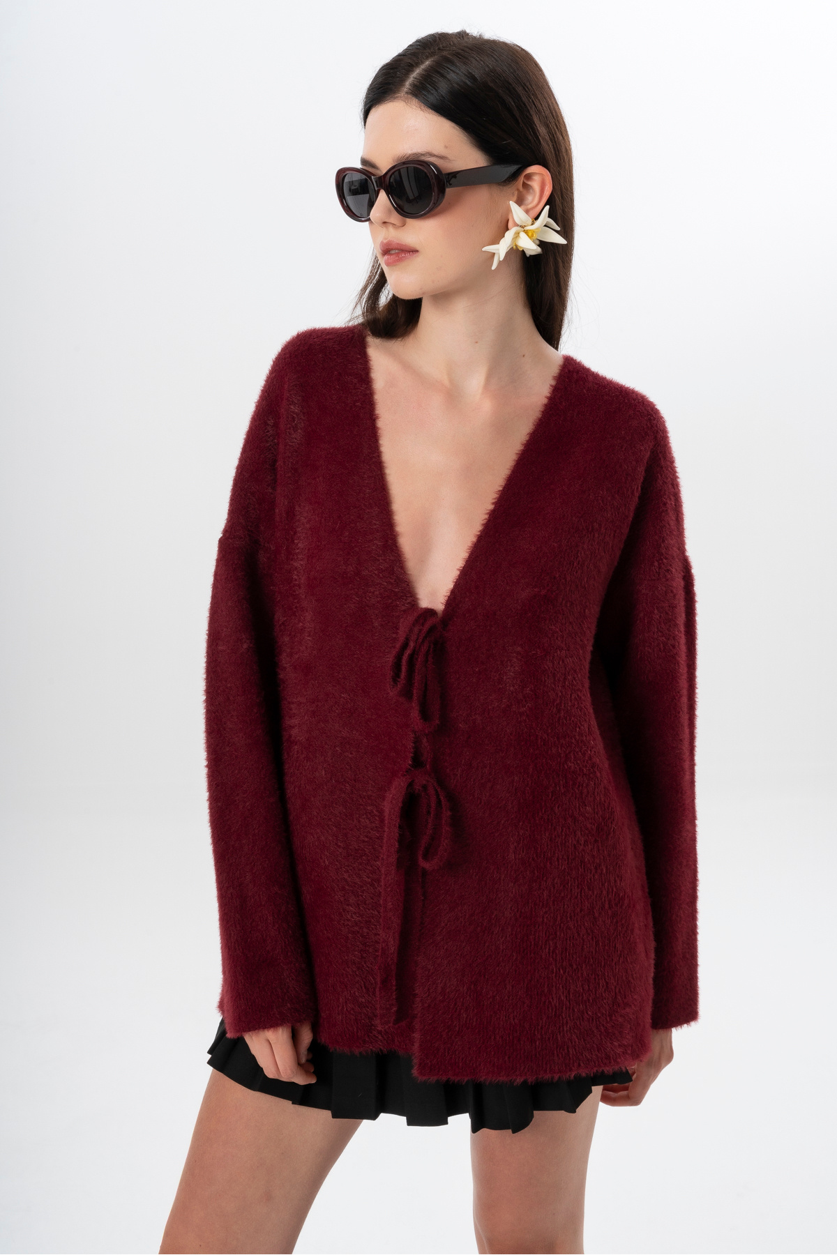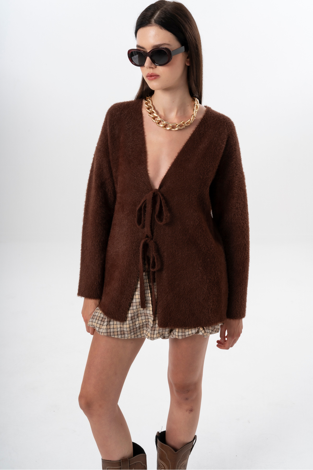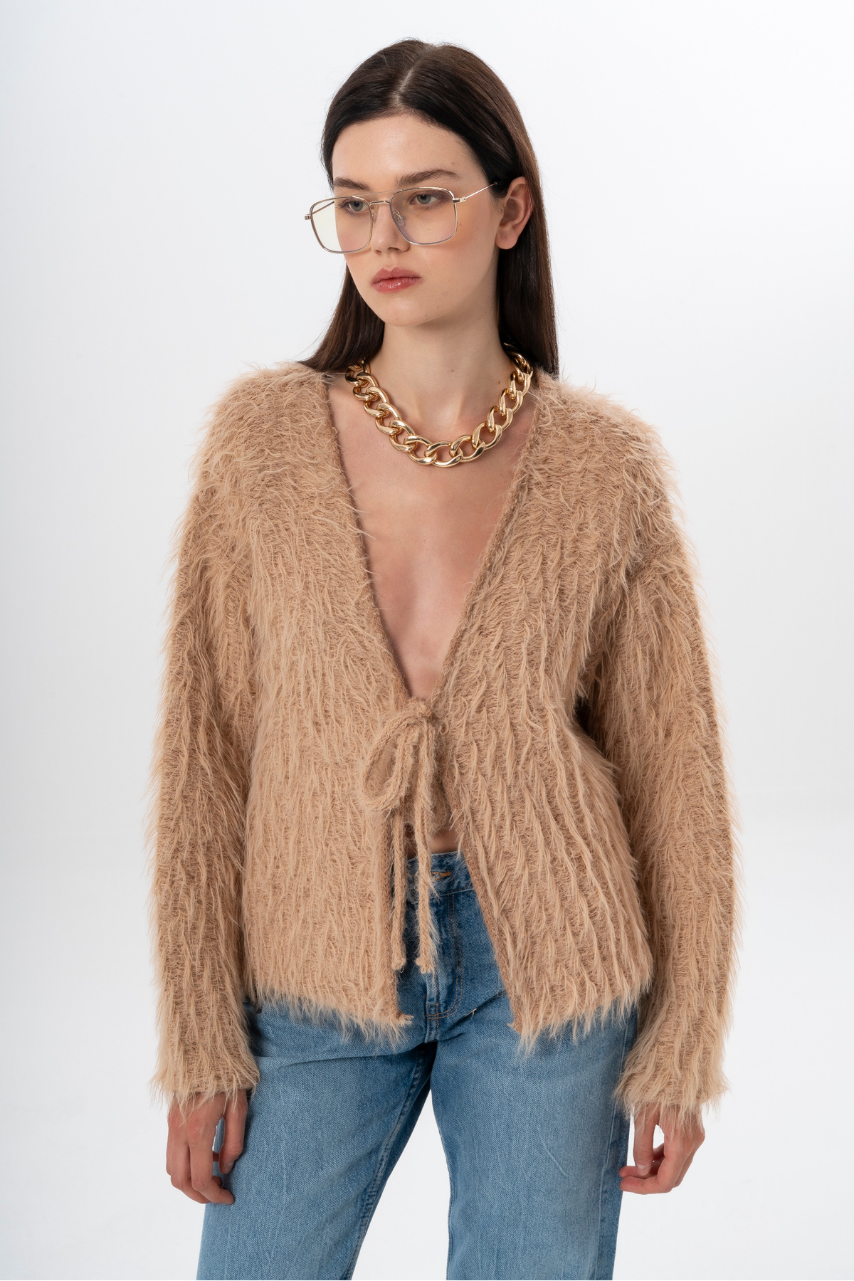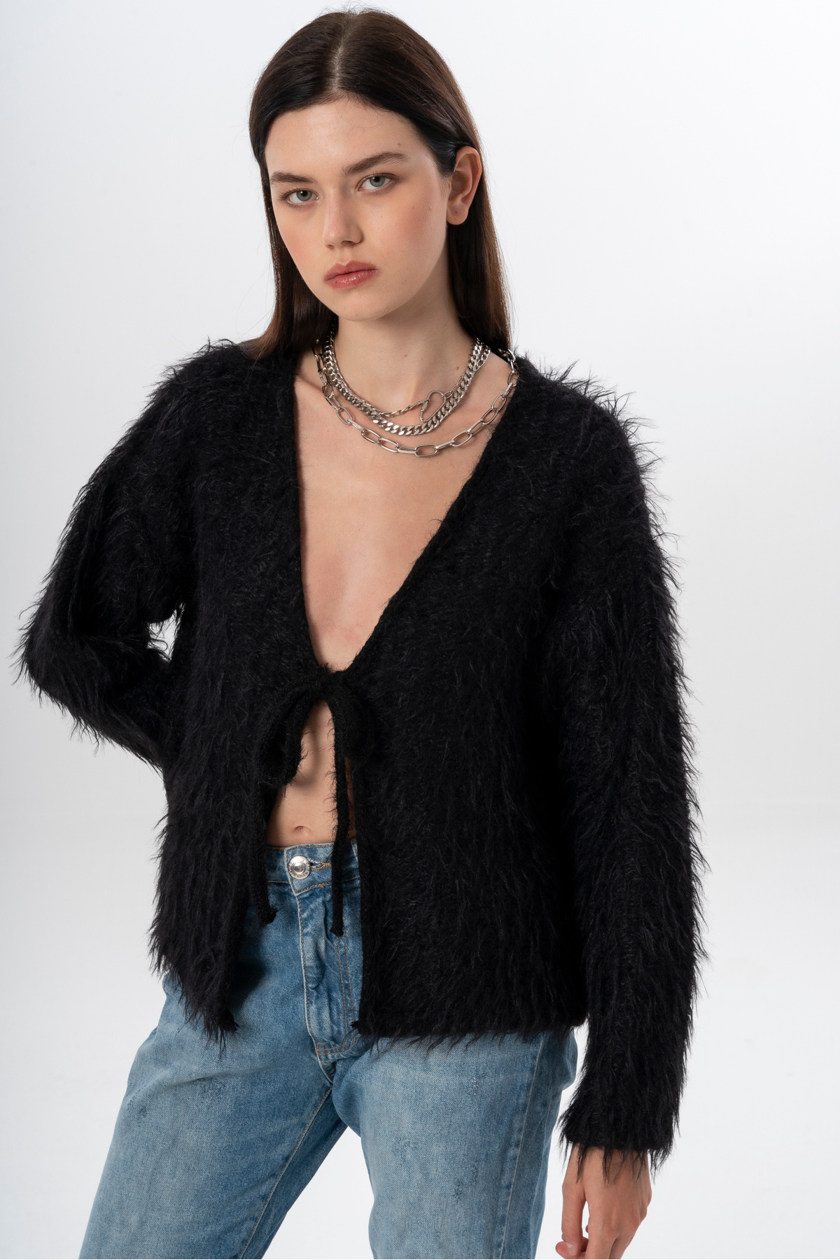 Kadın Kısa Tüylü V Yaka Bağlamalı Basic Uzun Hırka Kadın Kısa Tüylü V Yaka Bağlamalı Basic Uzun Hırka K2013 Standart