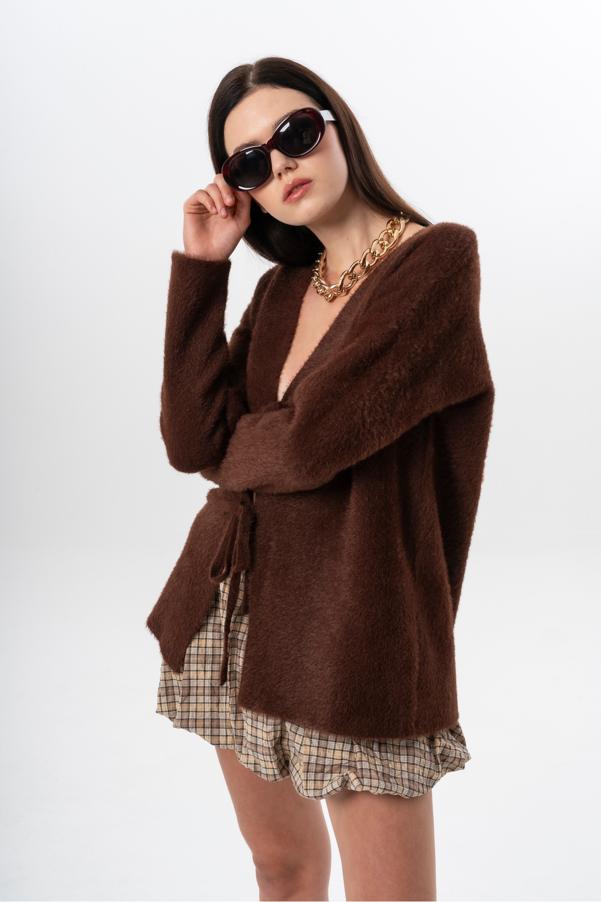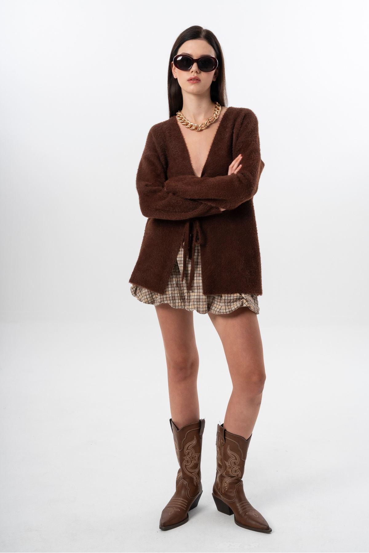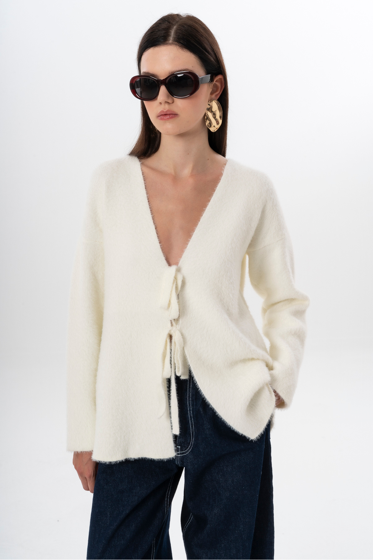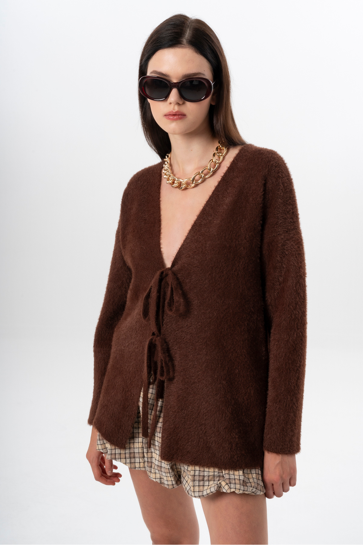 Kadın Kısa Tüylü V Yaka Bağlamalı Basic Uzun Hırka Kadın Kısa Tüylü V Yaka Bağlamalı Basic Uzun Hırka K2013 Standart
