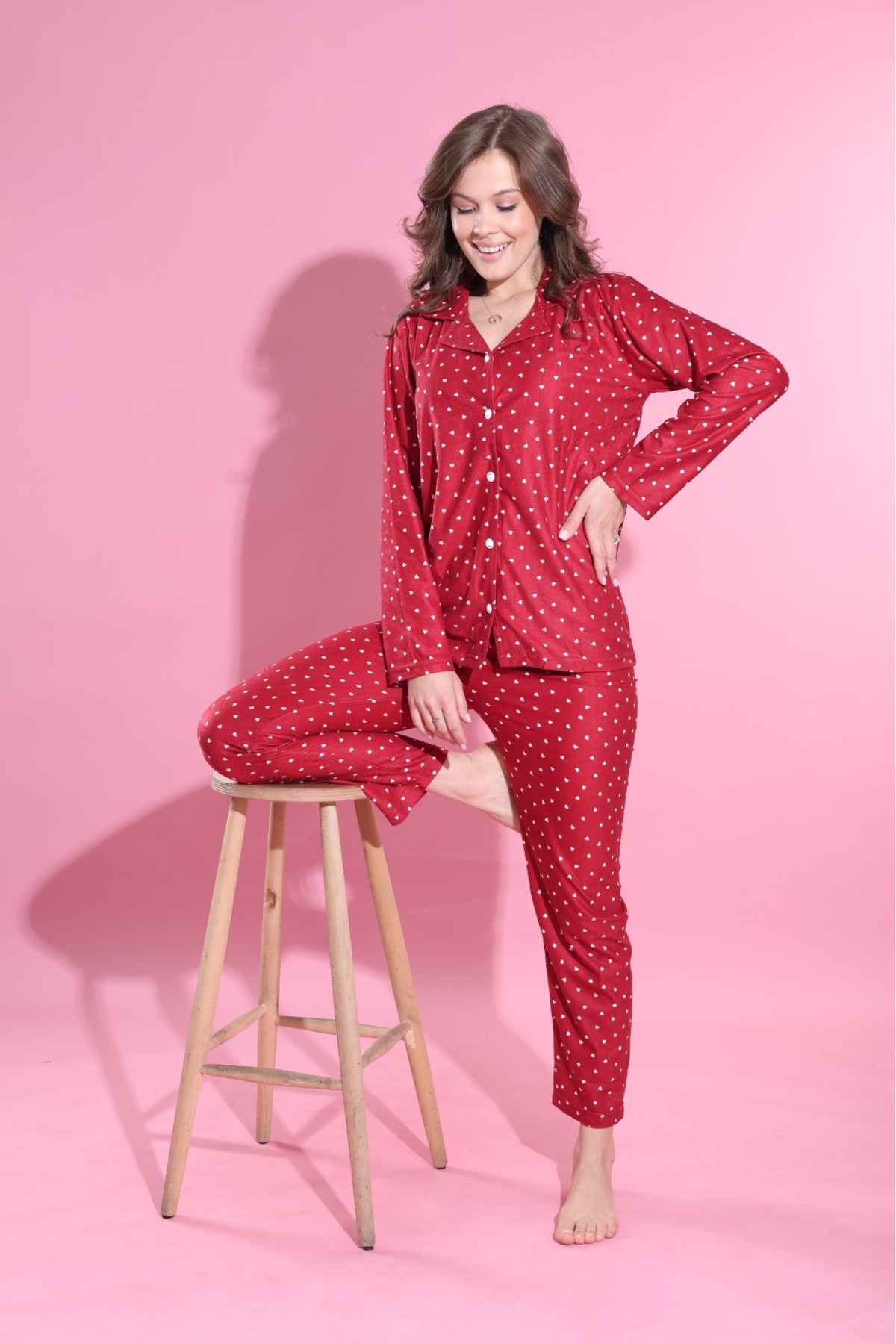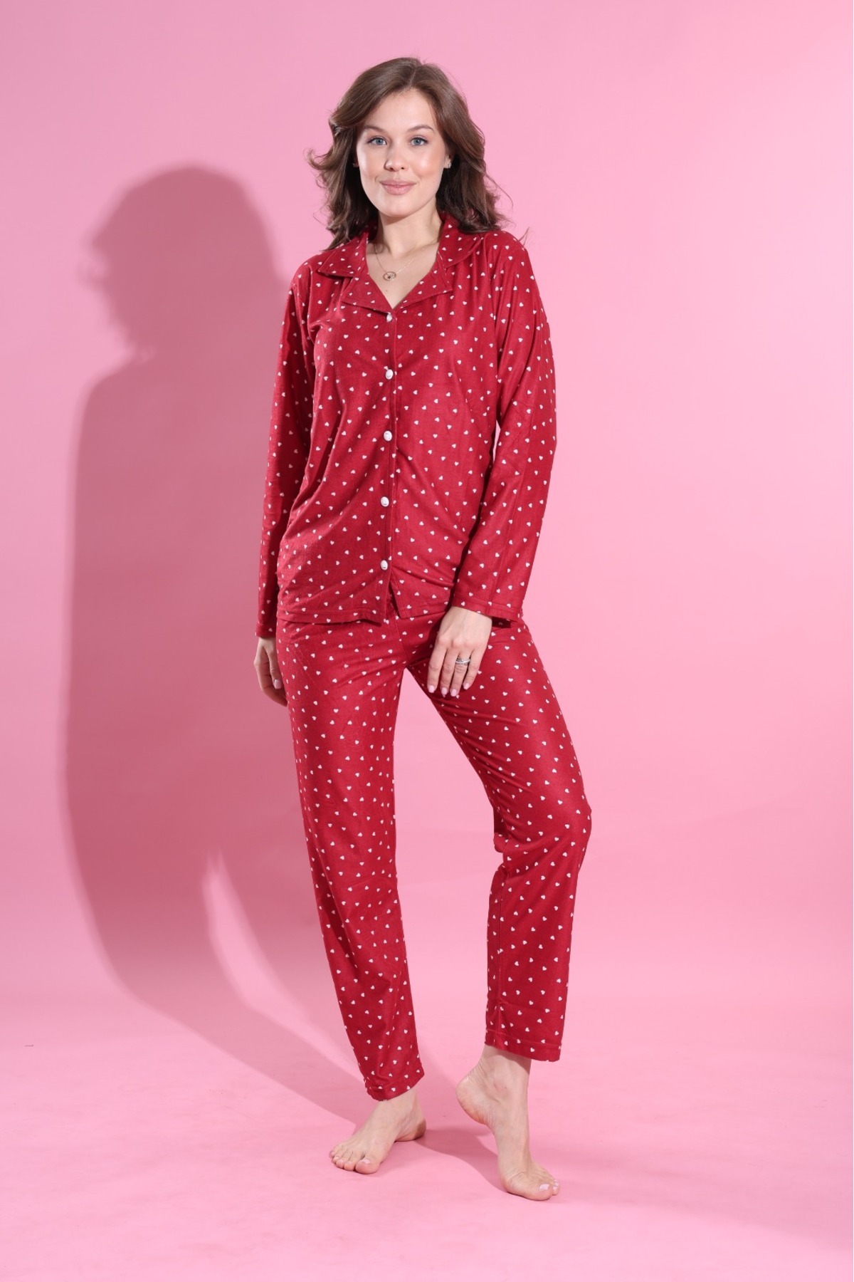 Kırmızı Minik Kalp Önden Düğmeli Kışlık Süet Kadın Pijama Takımı Kırmızı Minik Kalp Önden Düğmeli Kışlık Süet Kadın Pijama Takımı Elit-1991 2XL