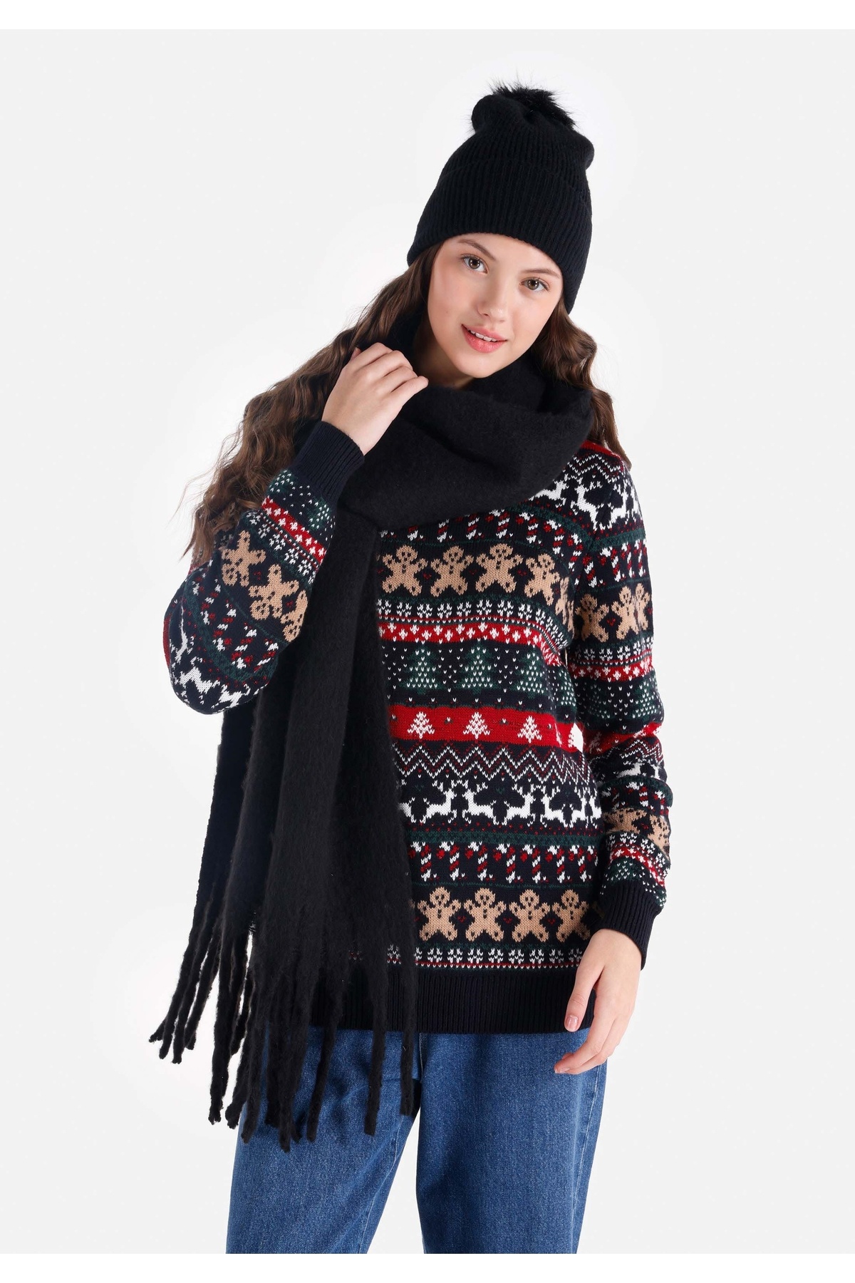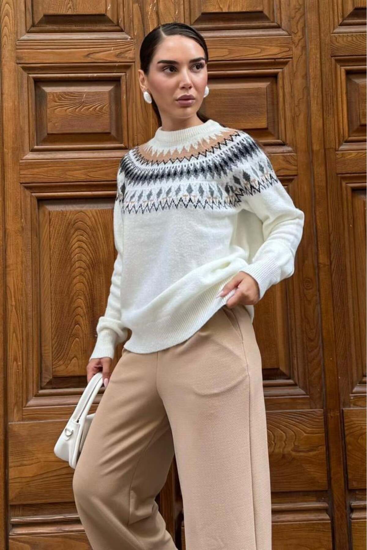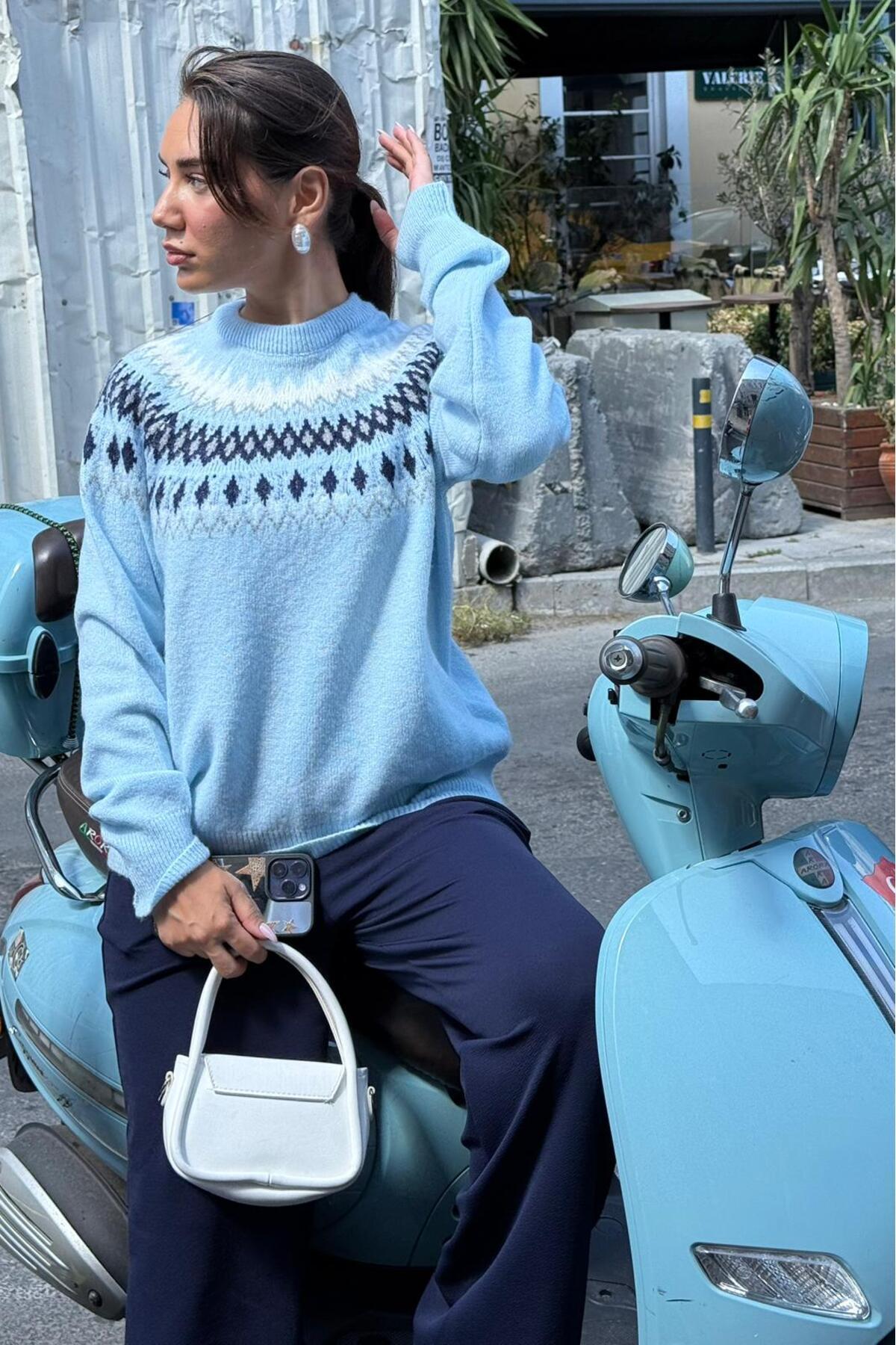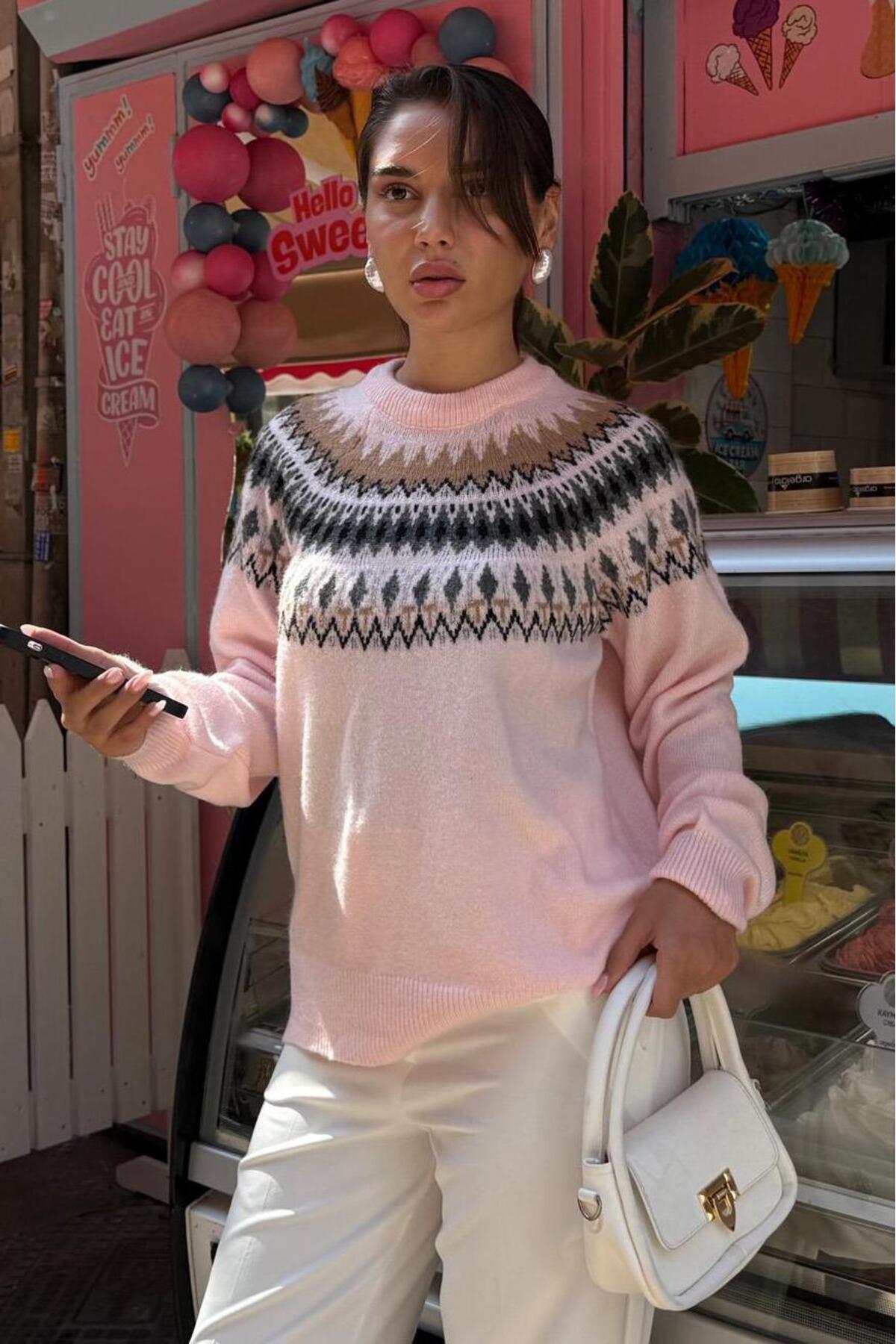 Pembe Bisiklet Yaka Desenli Kadın Triko Kazak Mg2502 Pembe Bisiklet Yaka Desenli Kadın Triko Kazak Mg2502 MG2502 L