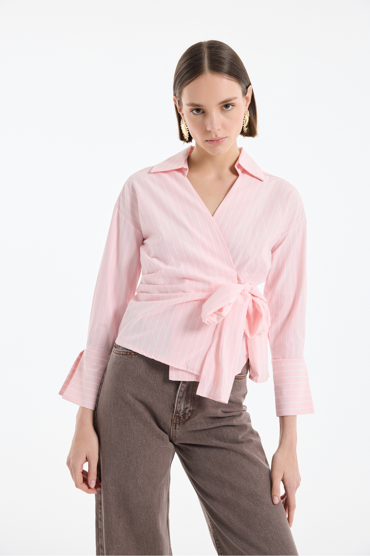Retro Geometrik Desenli Kruvaze Bağlamalı Bluz Kahverengi Retro Geometrik Desenli Kruvaze Bağlamalı Bluz Kahverengi 26KBLZ00845 L
