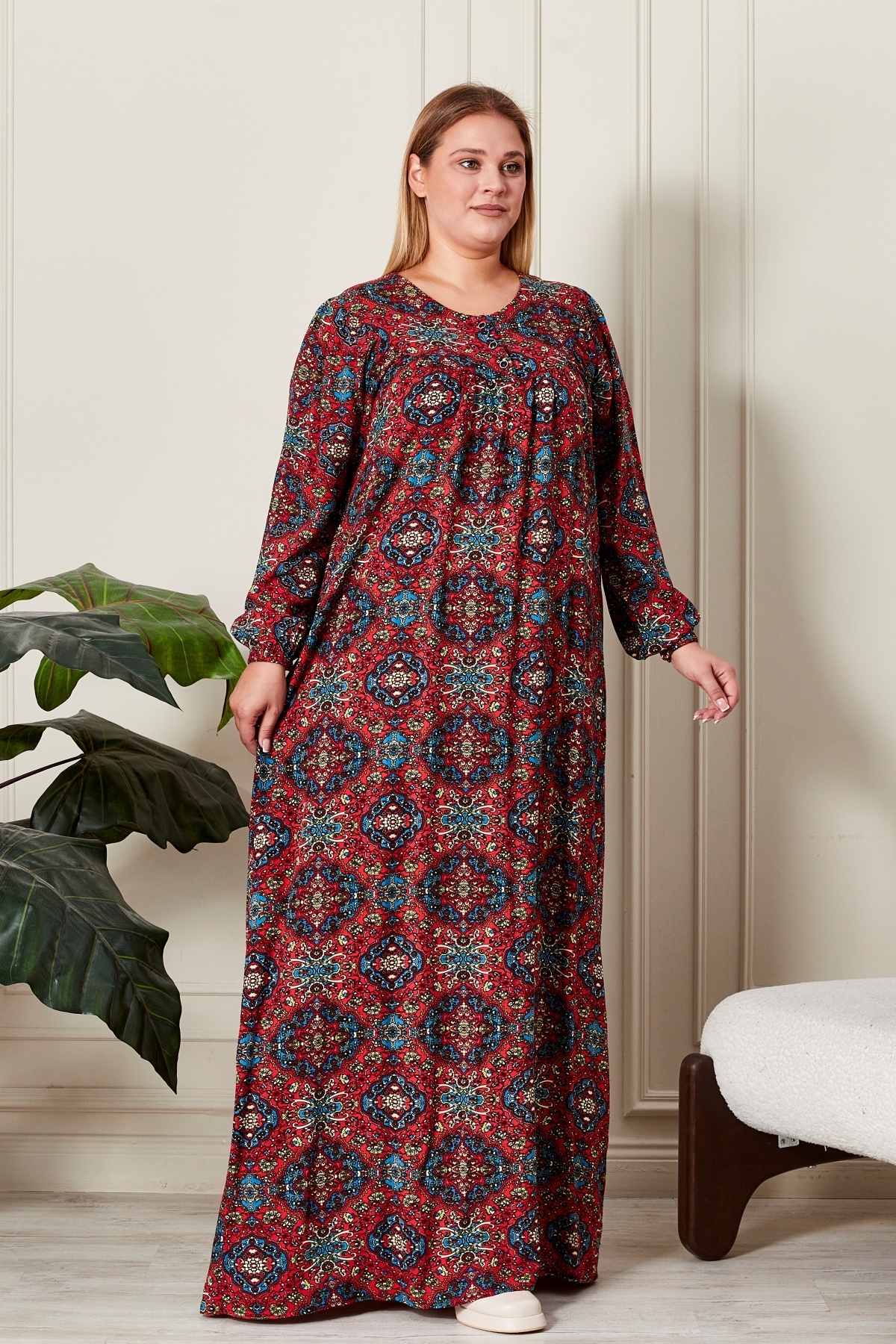 Kadın Büyük Beden Etnik Desen Robalı Elbise Kadın Büyük Beden Etnik Desen Robalı Elbise 9420SevimG1 6XL