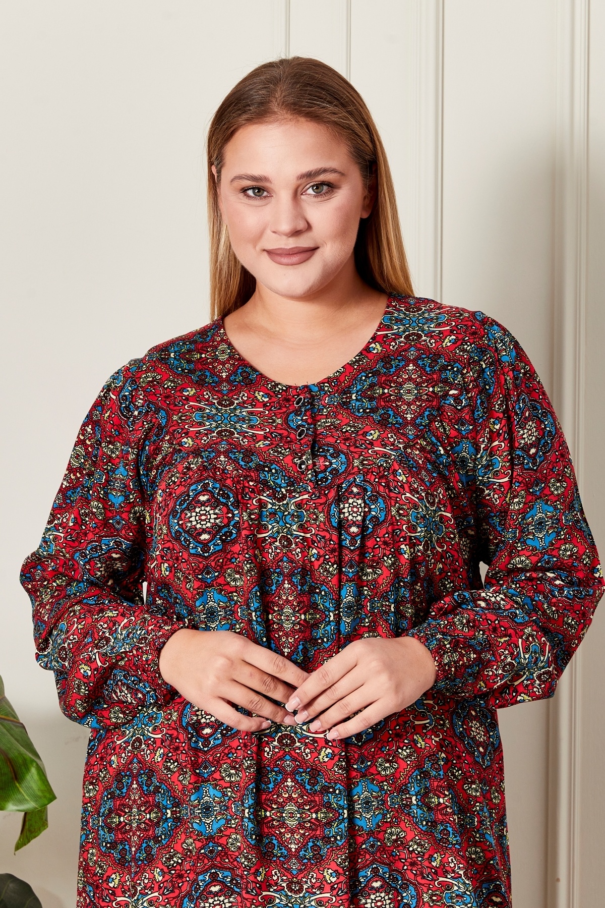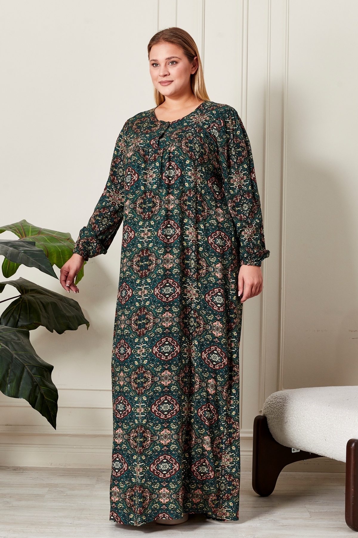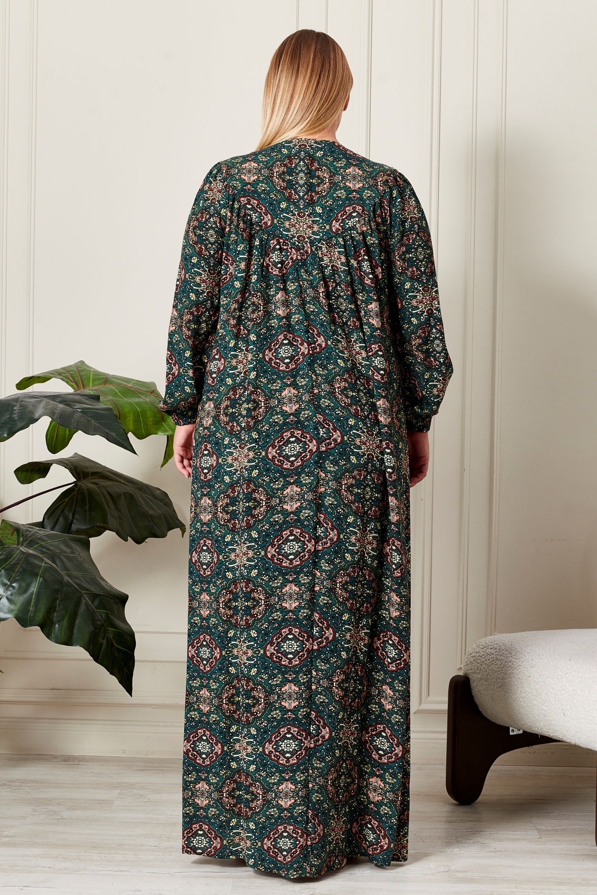 Kadın Büyük Beden Etnik Desen Robalı Elbise Kadın Büyük Beden Etnik Desen Robalı Elbise 9420SevimG1 6XL