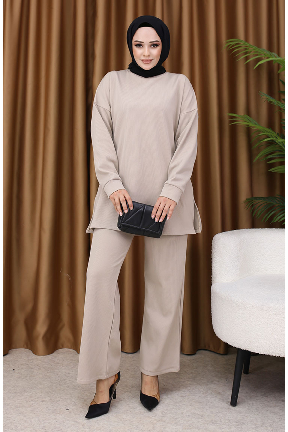Fitilli Tunik Pantolon İkili Takım 5570-06 Bej Fitilli Tunik Pantolon İkili Takım 5570-06 Bej AFC5570 44