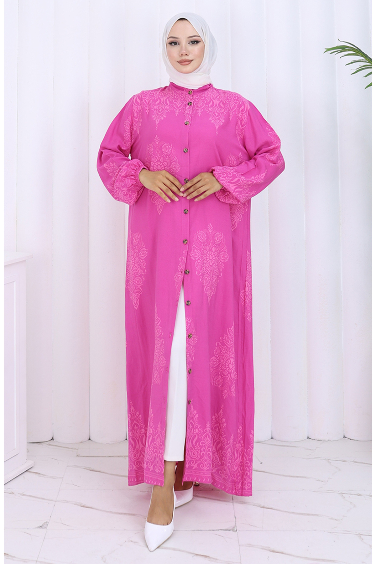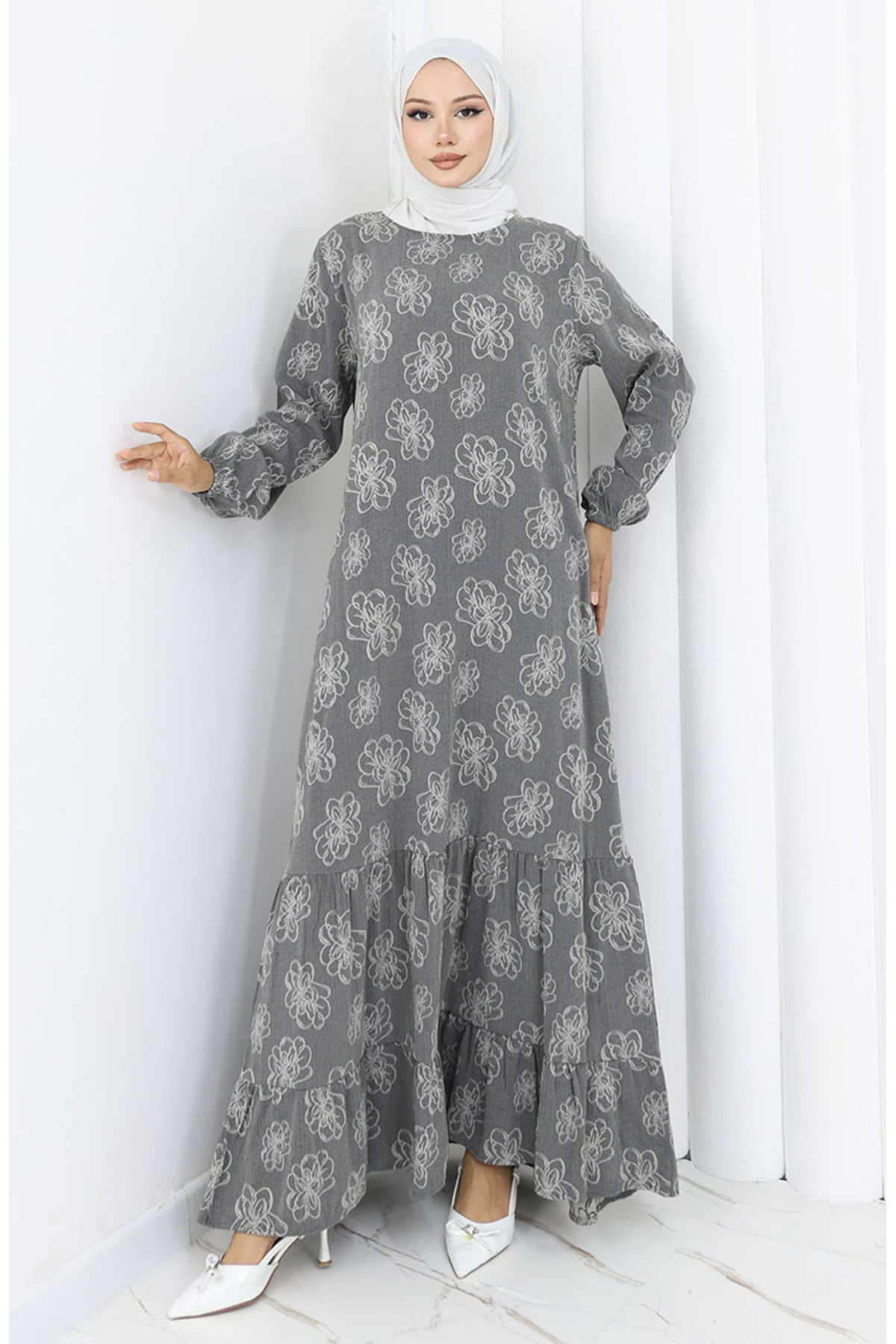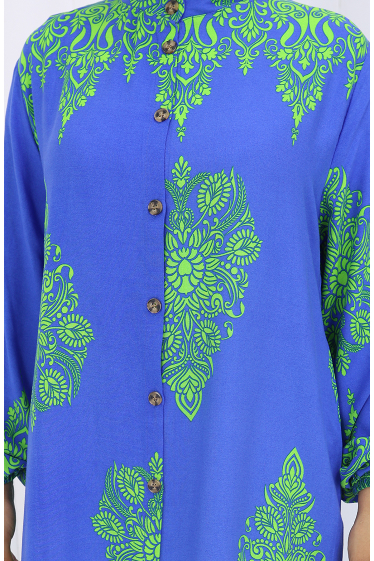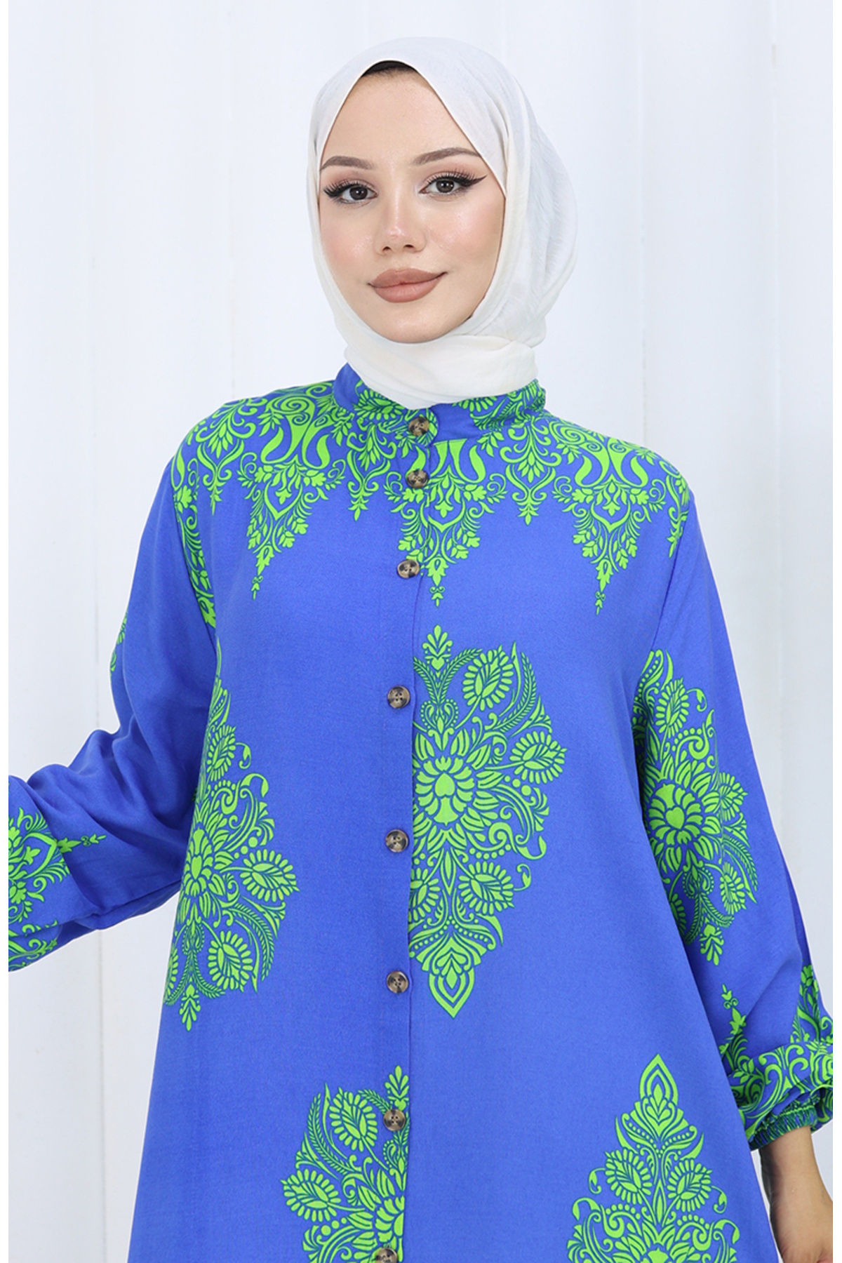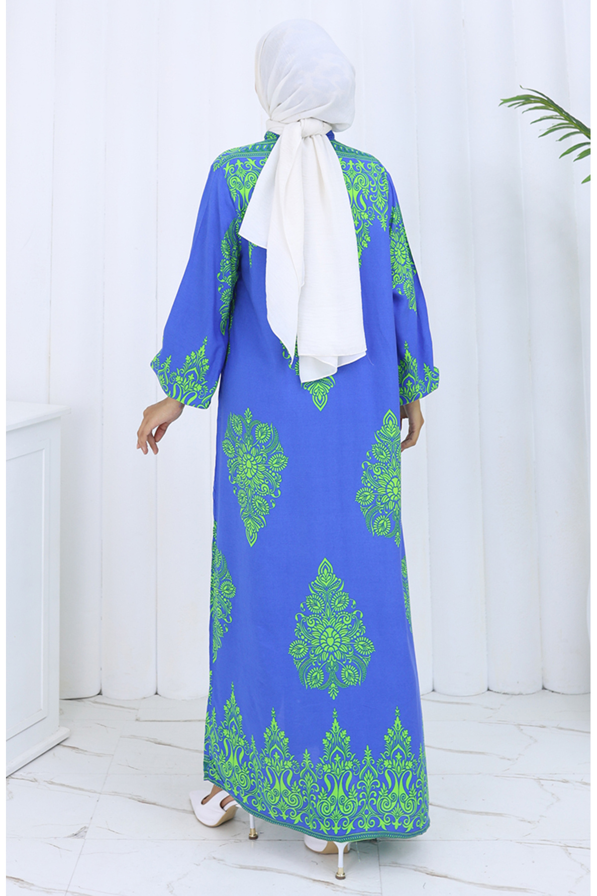 Hakim Yaka Desenli Elbise 2126-04 Saks Yeşil Hakim Yaka Desenli Elbise 2126-04 Saks Yeşil ZEMHERİ2126 50-52