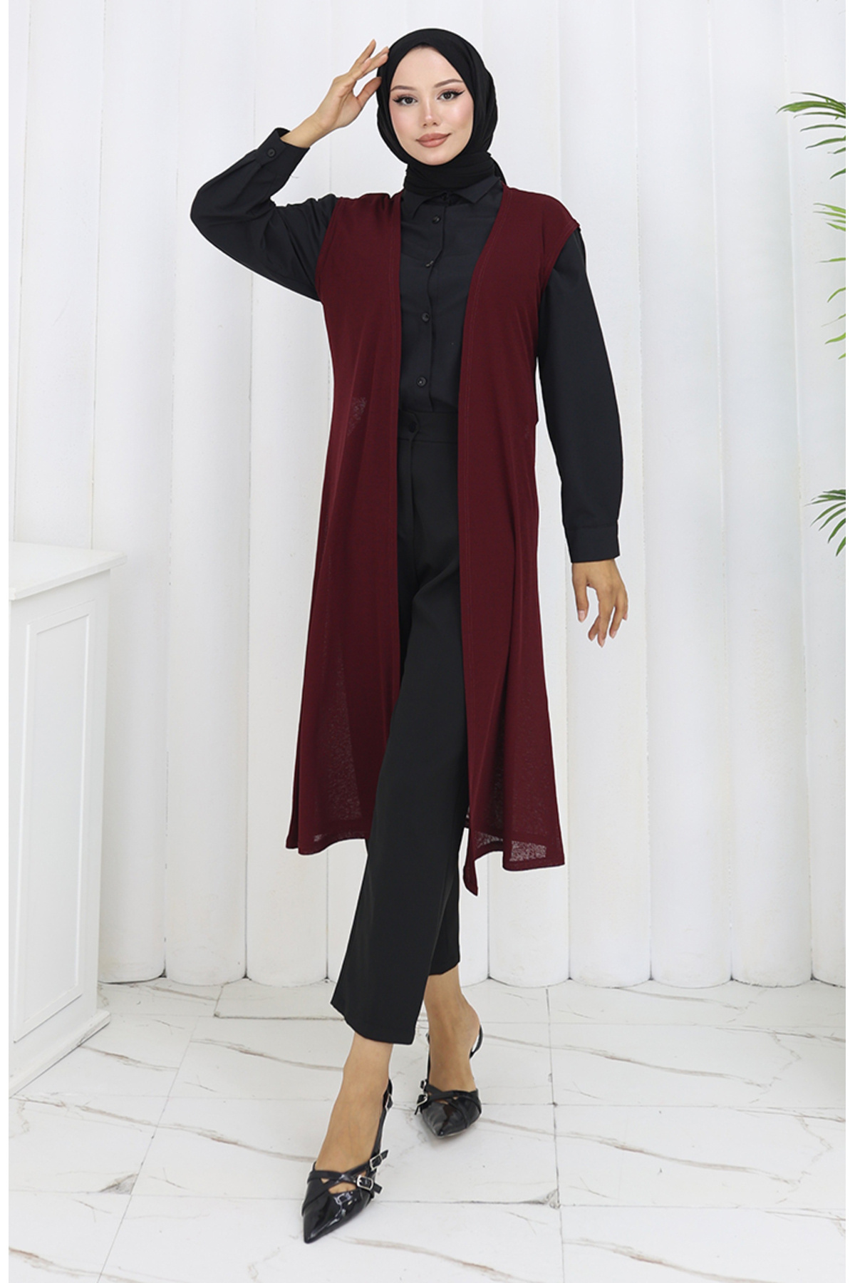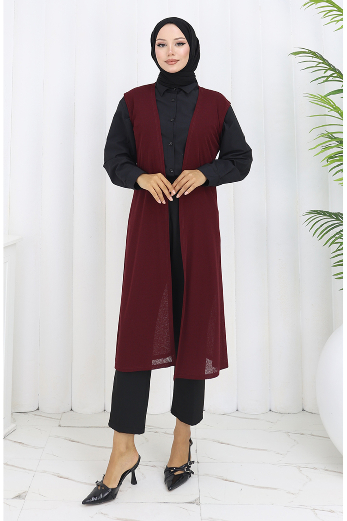 Sade Ince Basic Uzun Yelek Kadın Yelek Büyük Beden Yelek 8763-02 Mürdüm Sade Ince Basic Uzun Yelek Kadın Yelek Büyük Beden Yelek 8763-02 Mürdüm RSPR8763 50-52