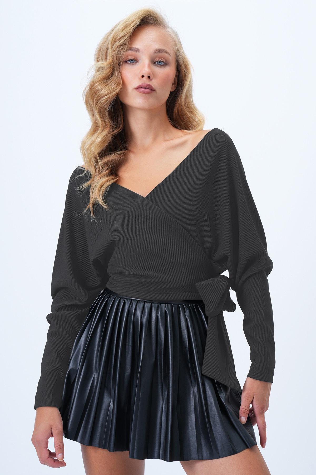 Kadın Bordo Ön Arka Kruvaze Yaka Bağlama Detaylı Ottoban Crop Bluz Alc-X14346 Kadın Bordo Ön Arka Kruvaze Yaka Bağlama Detaylı Ottoban Crop Bluz Alc-X14346 alcx14346 42